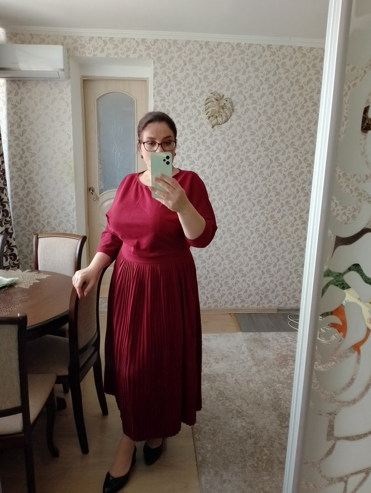 рекомендуем трикотажное платье выбирать на размер больше, чем текстильное. А