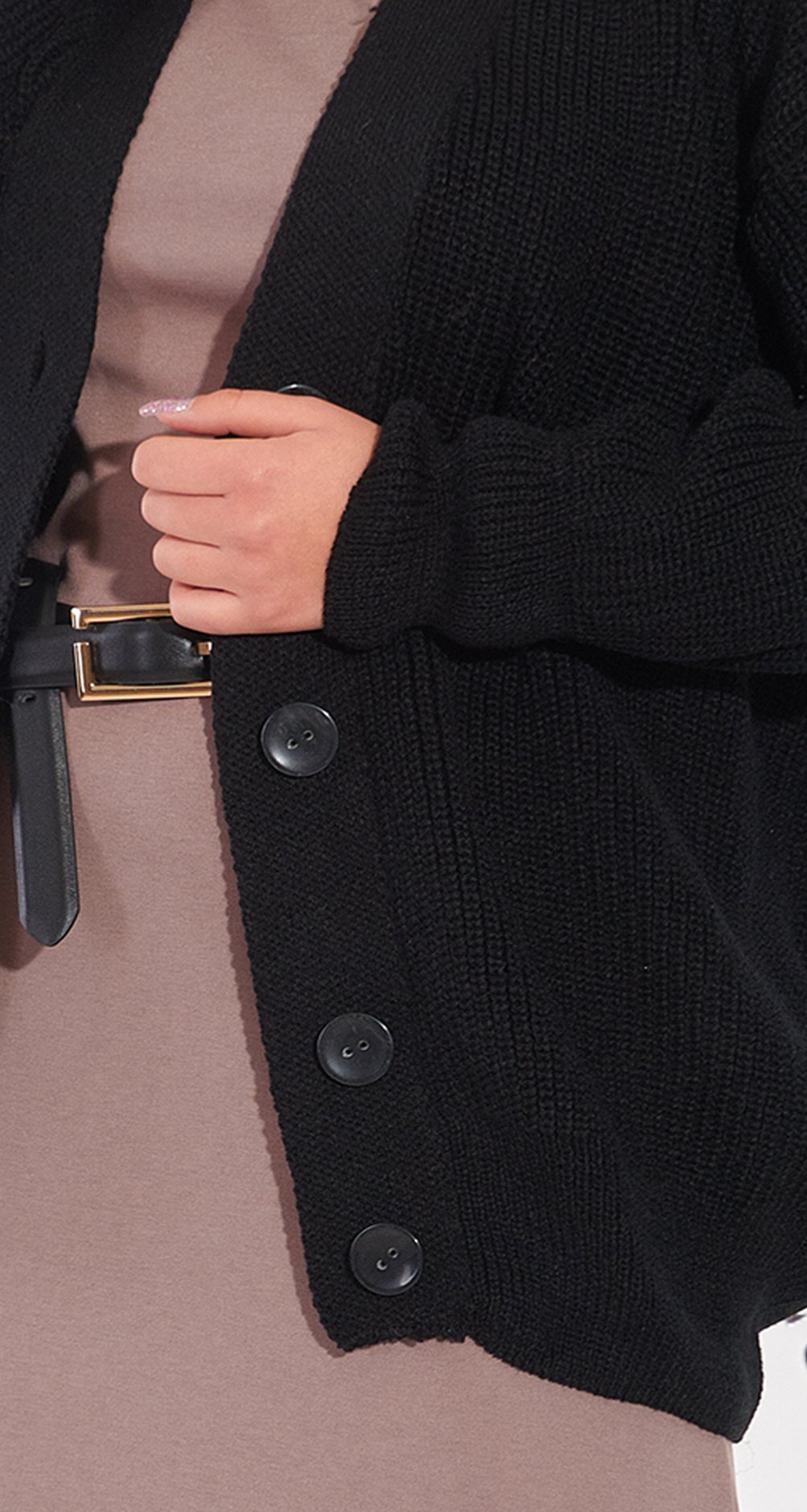 Крупная вязка и застёжка на пуговицы выглядят стильно!