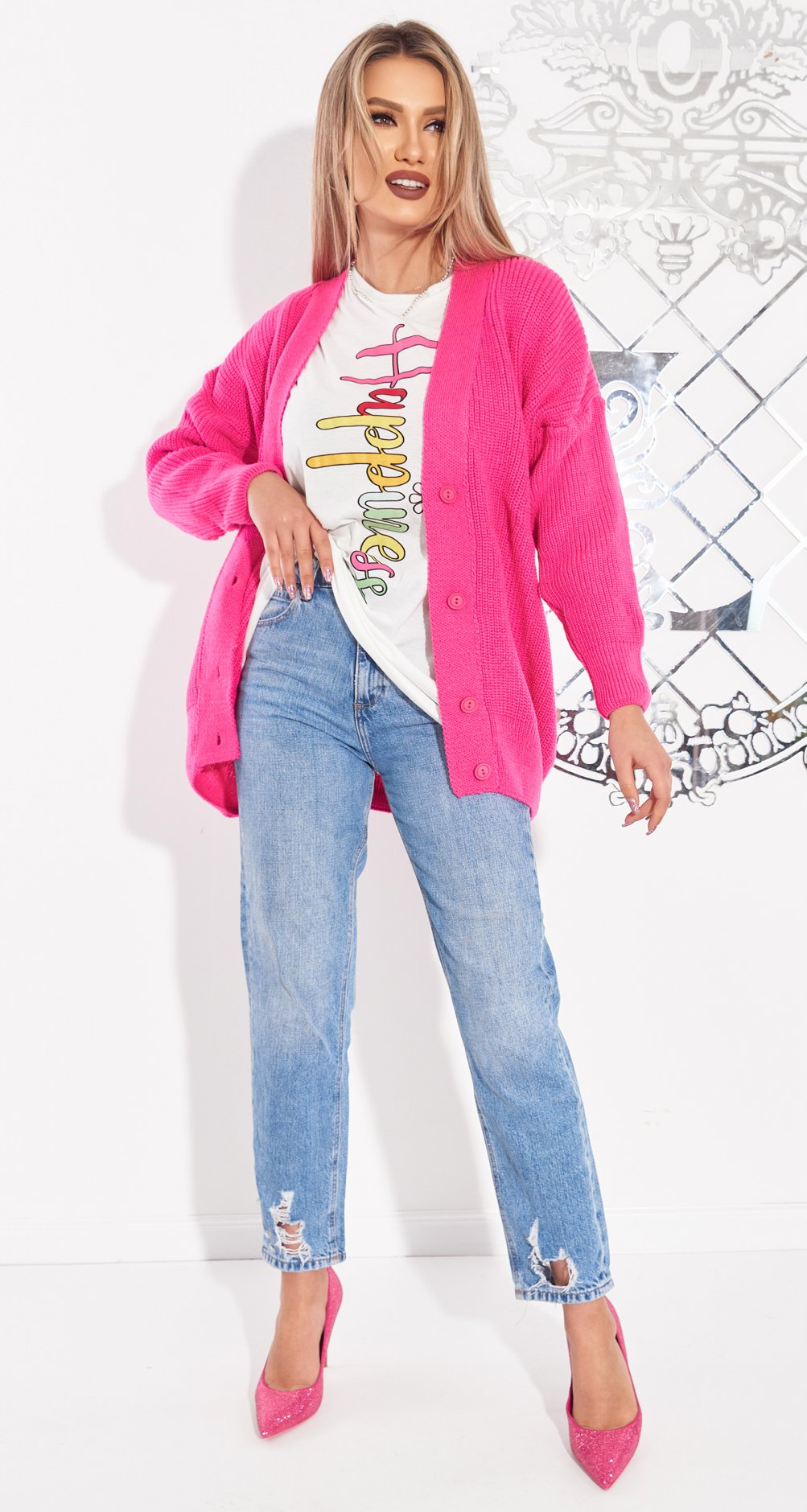 Крупная вязка и застёжка на пуговицы выглядят стильно!