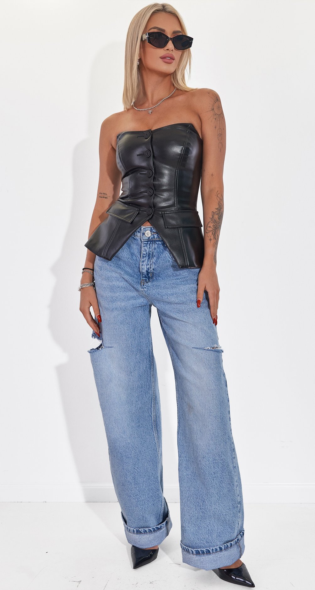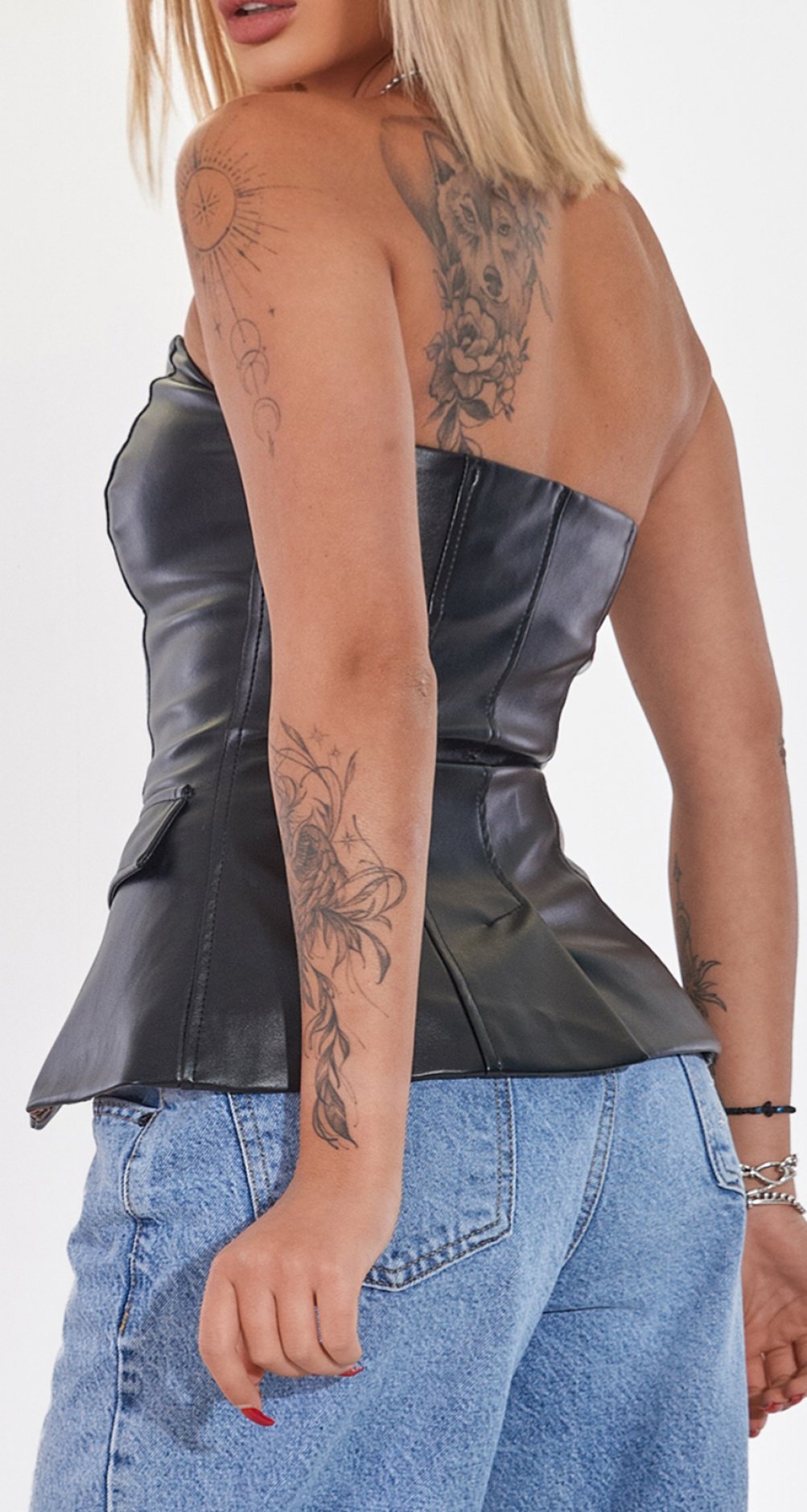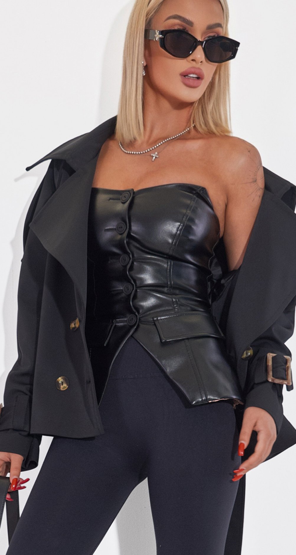 Подчеркните свою силу и женственность с нашим корсетным топом из роскошной эко-кожи! Этот корсет — не просто одежда, это заявление. Классический черный цвет и четкие линии создают дерзкий и элегантный образ.