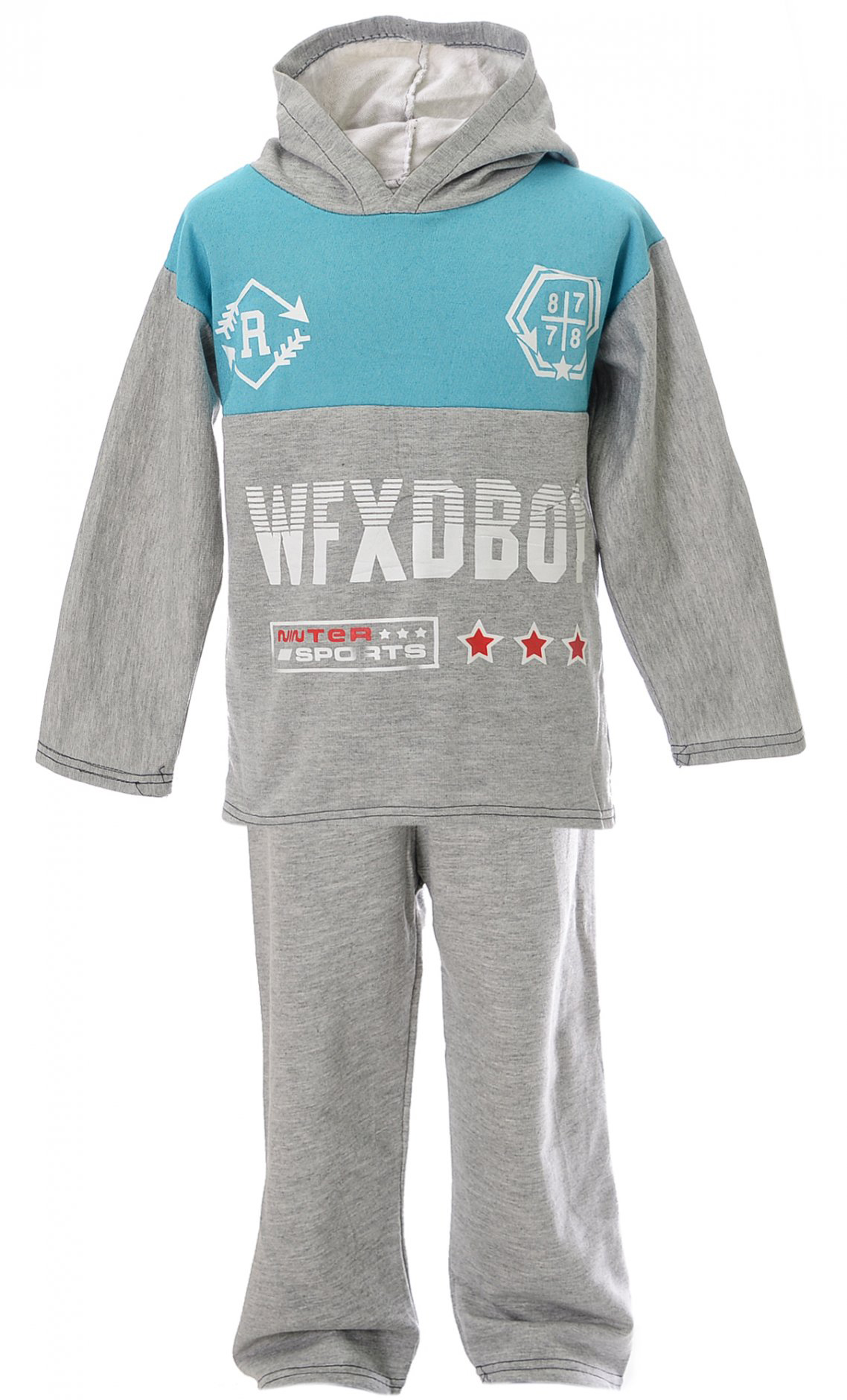 Стильный теплый спортивный костюм для мальчика с надписями впереди. Батник с капюшоном.