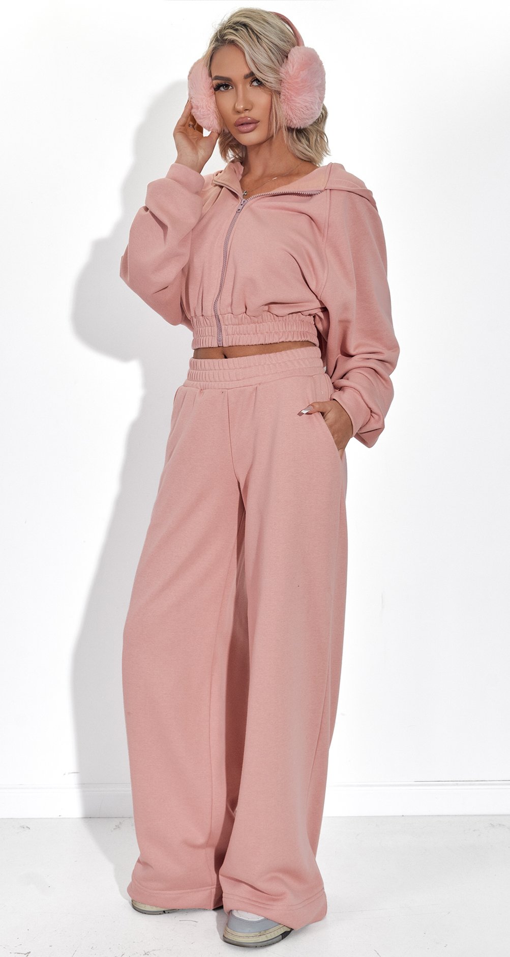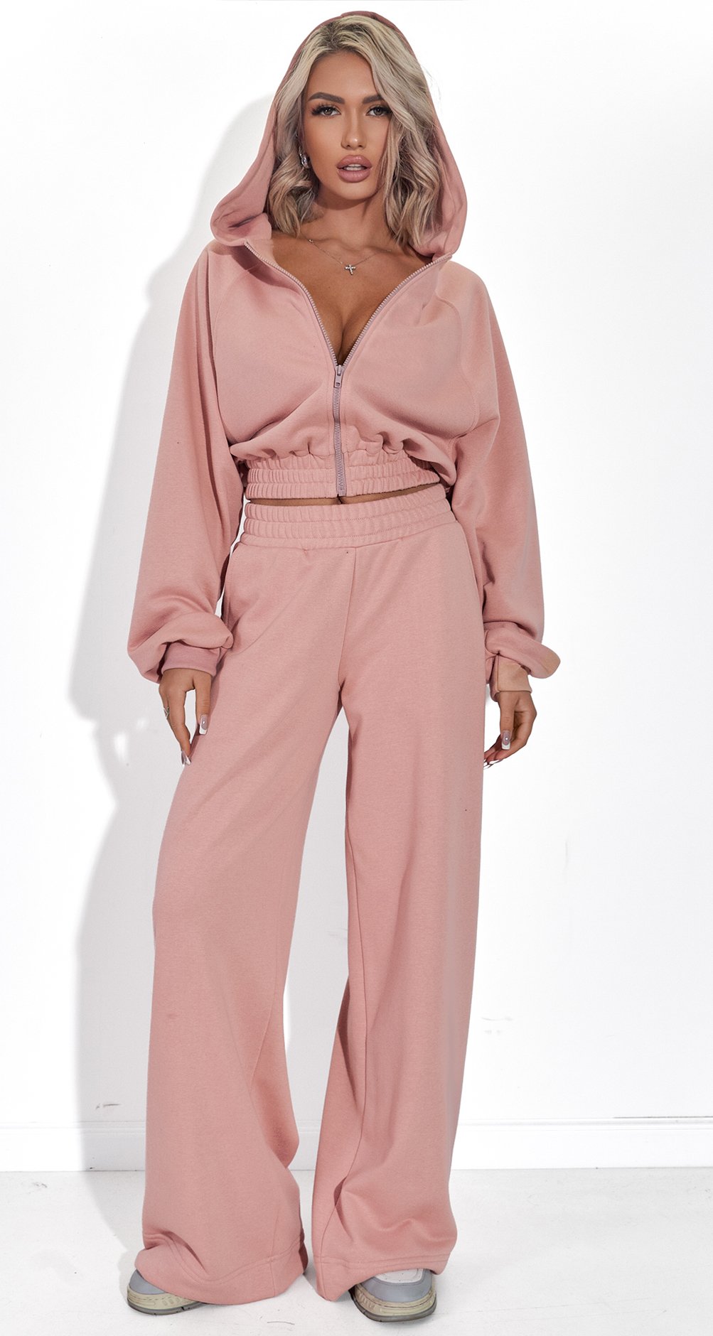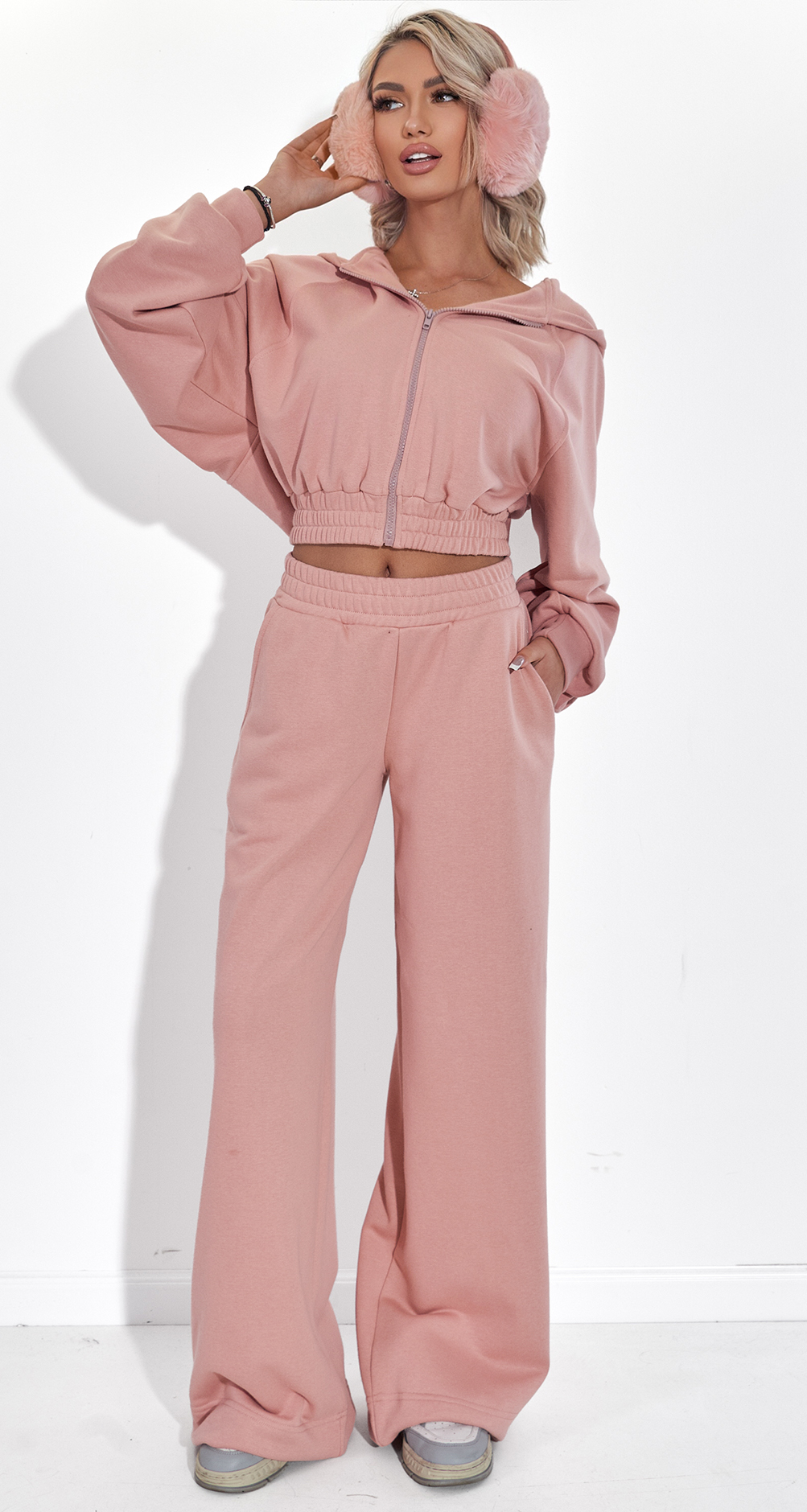 Совершенный Крой: Кроп-худи с капюшоном подчеркнет талию, а ультра-широкие брюки палаццо визуально удлинят ноги и создадут эффектный, струящийся силуэт.