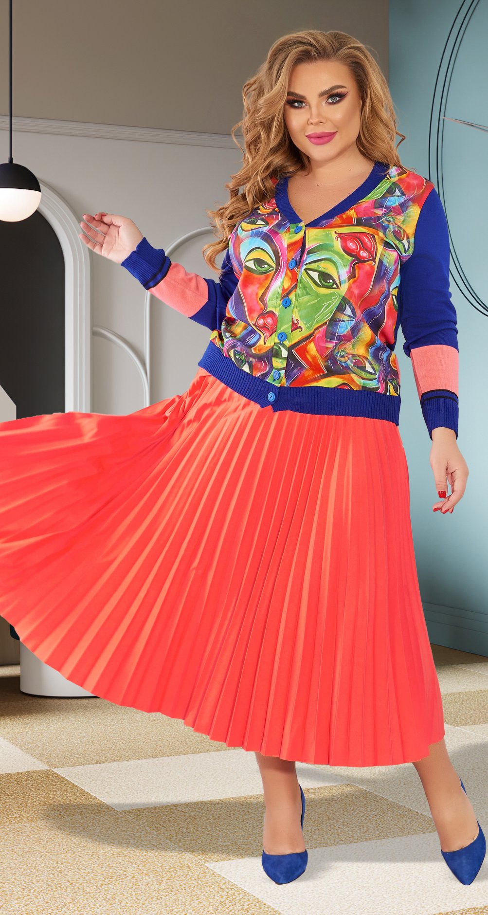 Вязаный жакет с шелковым передом и расклешенная юбка в складку "гофре" , солье !