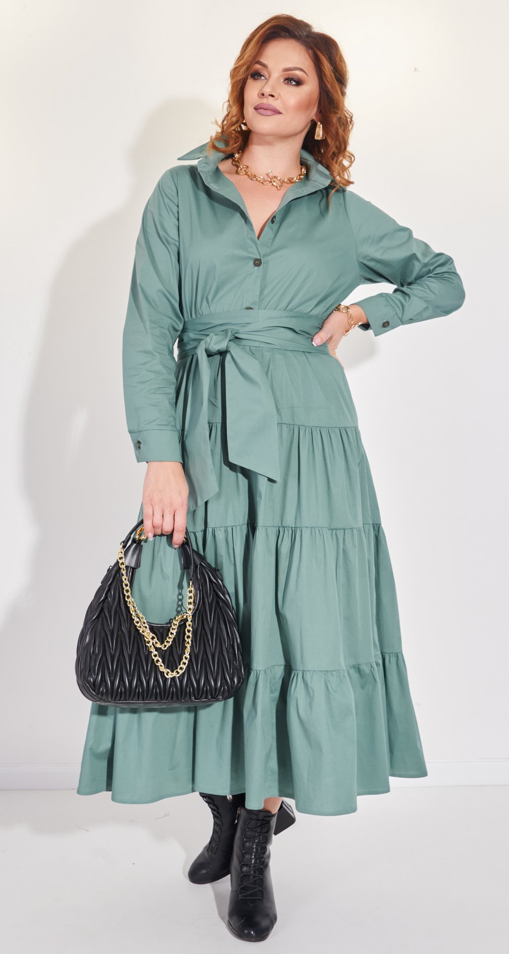 Каталог - Платья - Платья больших размеров - Коттоновое платье с оборками