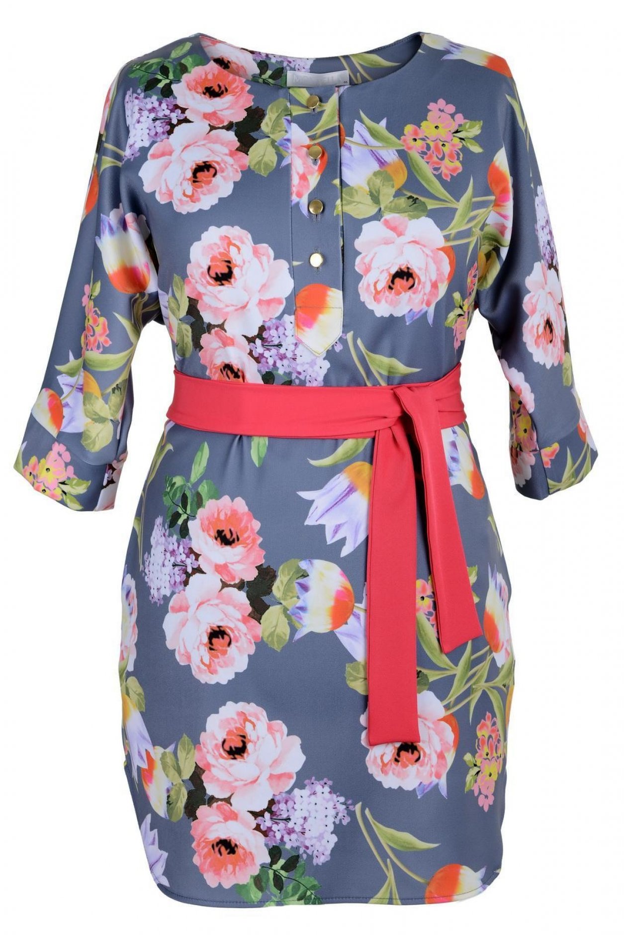 Яркое стильное платье ,с цветами! Из хорошей плательной ткани, с поясом.