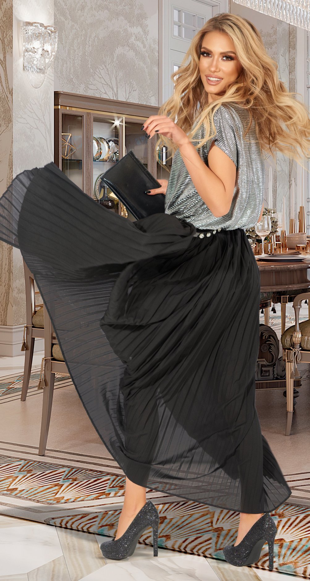 Лаконичный крой! Так красиво и дорого выглядит юбка плиссе и серебристый верх!
