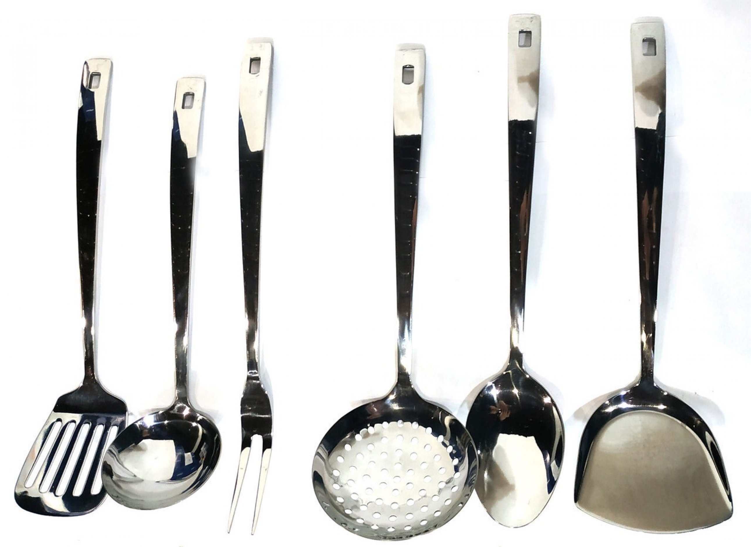 Кухонный набор состоит из 7 предметов изготовленных из высококачественной нержавеющей стали. Кухонные инструменты будут удобны в использовании и выполнены в современном элегантном дизайне.
