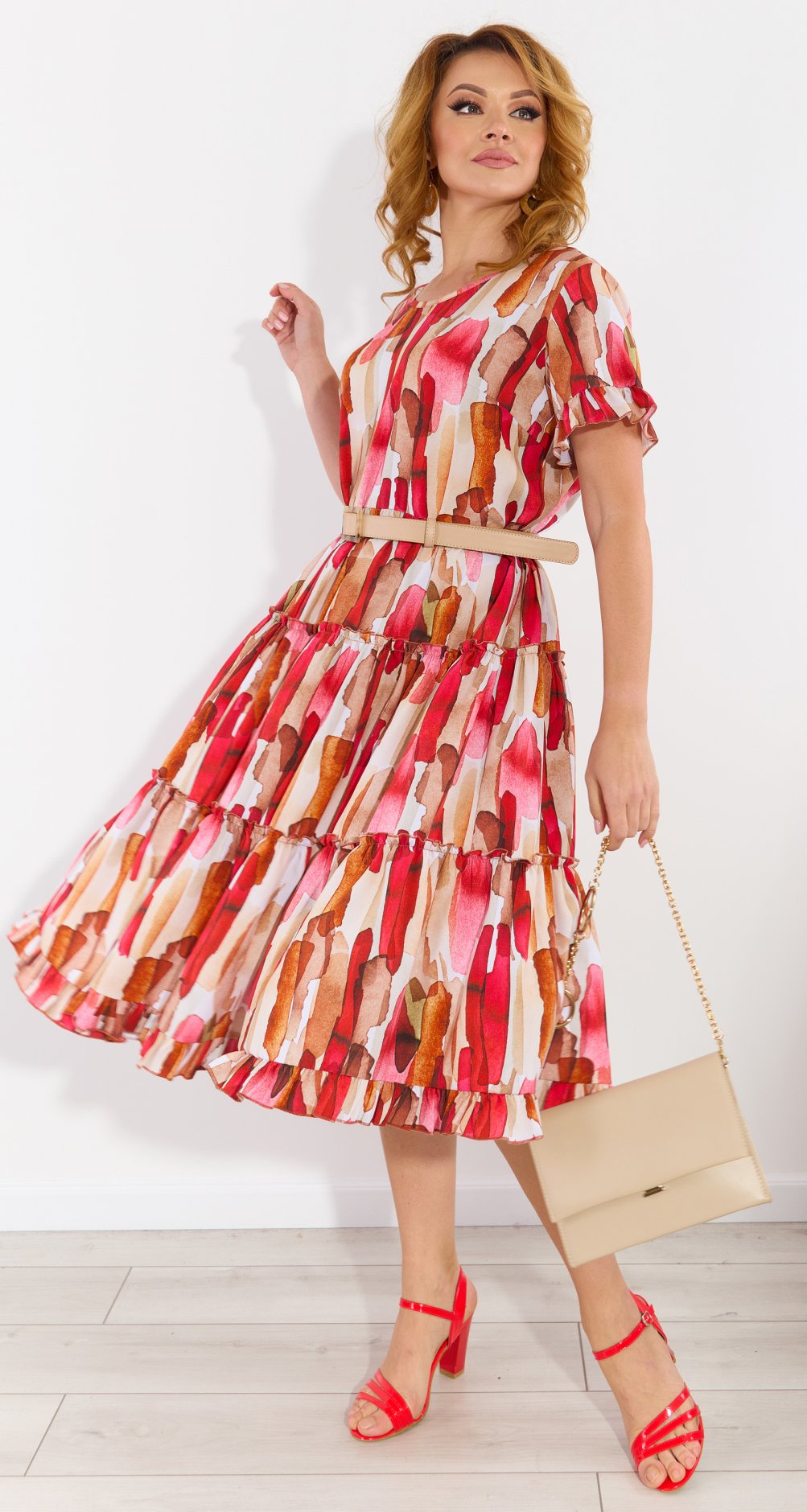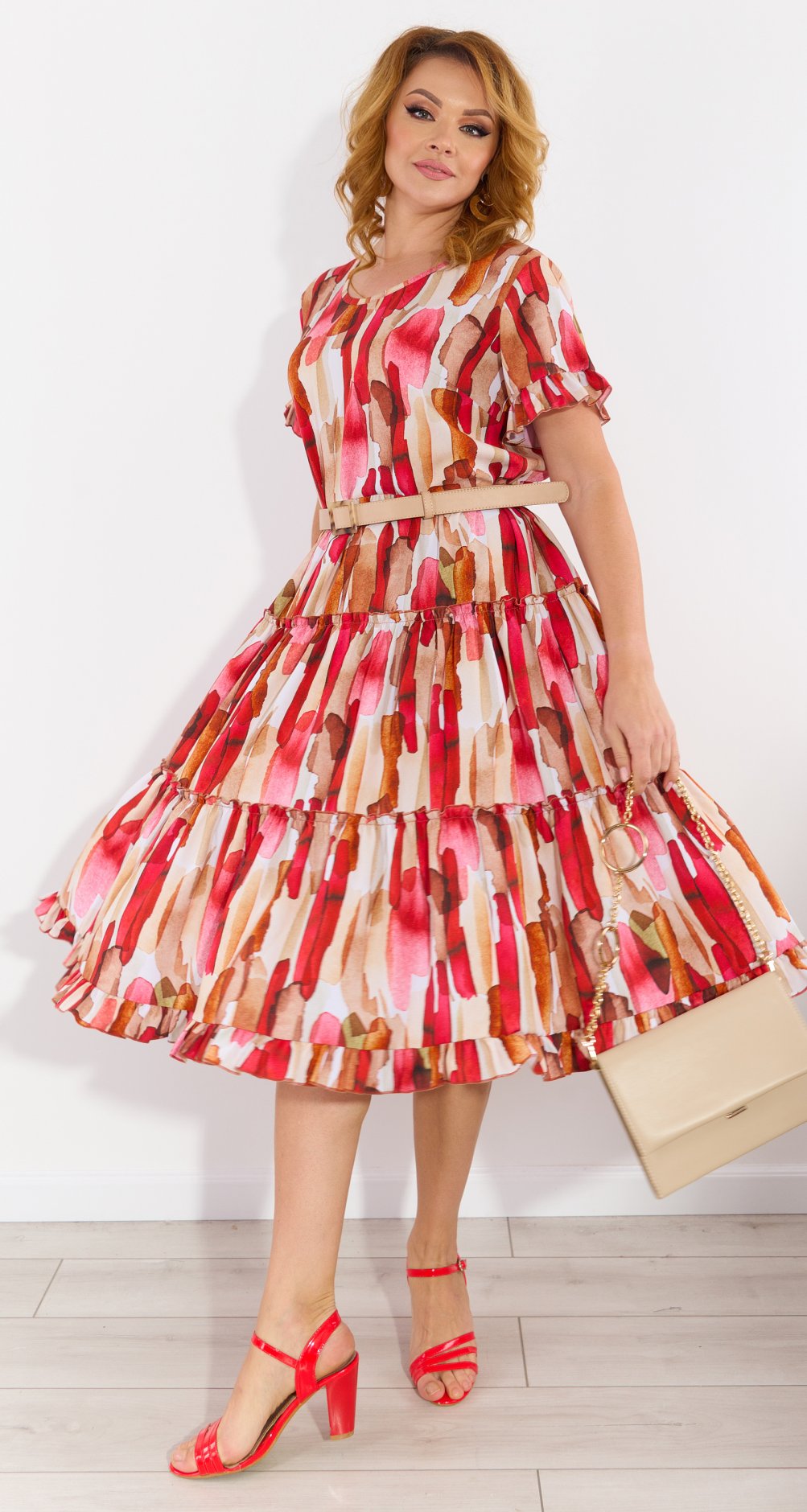 Но компания просит Вас учитывать, что трикотажное платье всегда будет на 10% меньше чем платье из текстиля, по своим обмерным данным! В этом случае оно выглядит более эстетично и женственно.