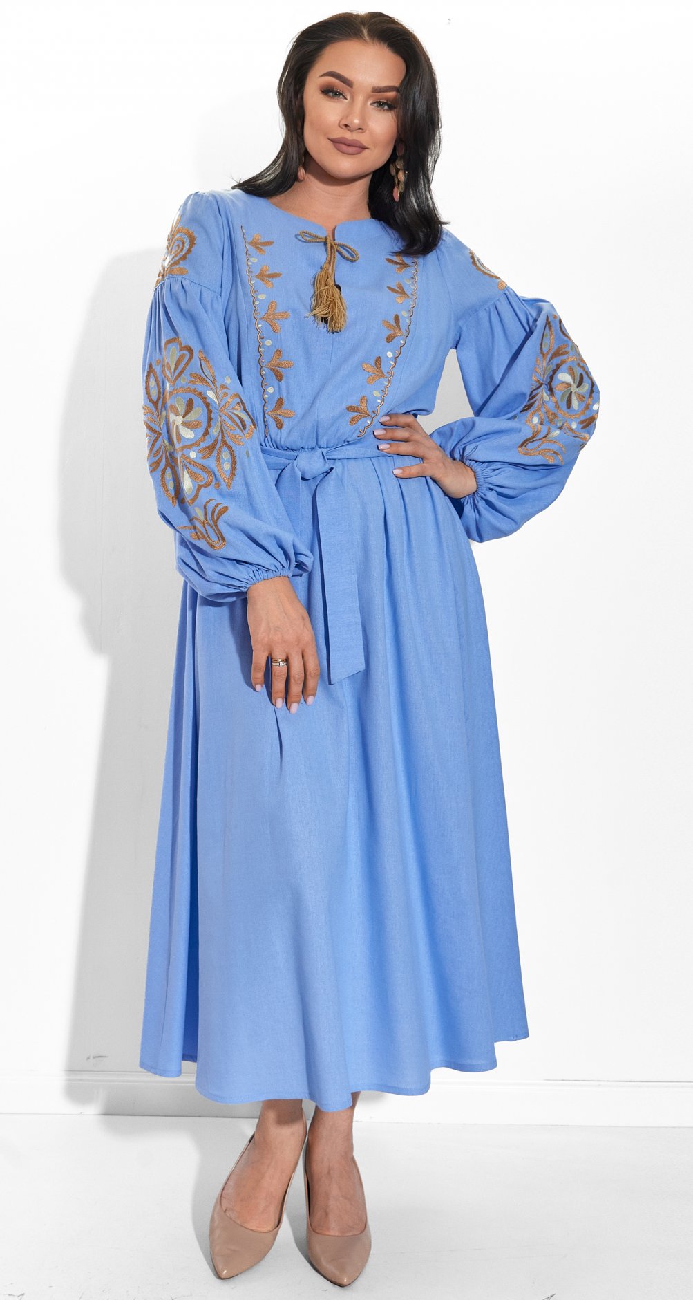 Представляем вам воплощение украинской души – льняное платье миди, украшенное вручную вышитыми мотивами. Натуральный лен обеспечивает комфорт и легкость, а красно-белая цветовая гамма вышивки несет в себе глубокий символизм. Пышные рукава собраны на манжету, а акцент на талии создается с помощью пояса в тон. Это платье станет ярким акцентом вашего гардероба, сочетая в себе культурное наследие и современные тенденции.