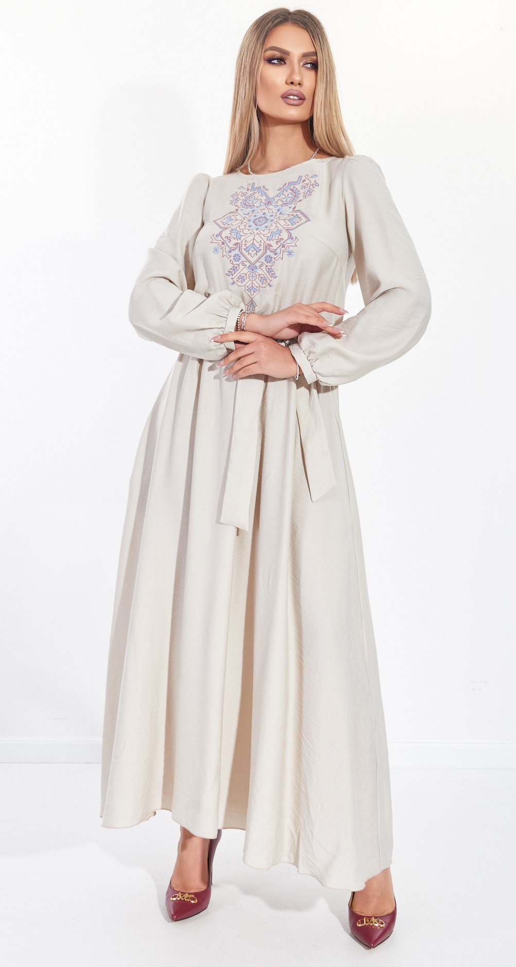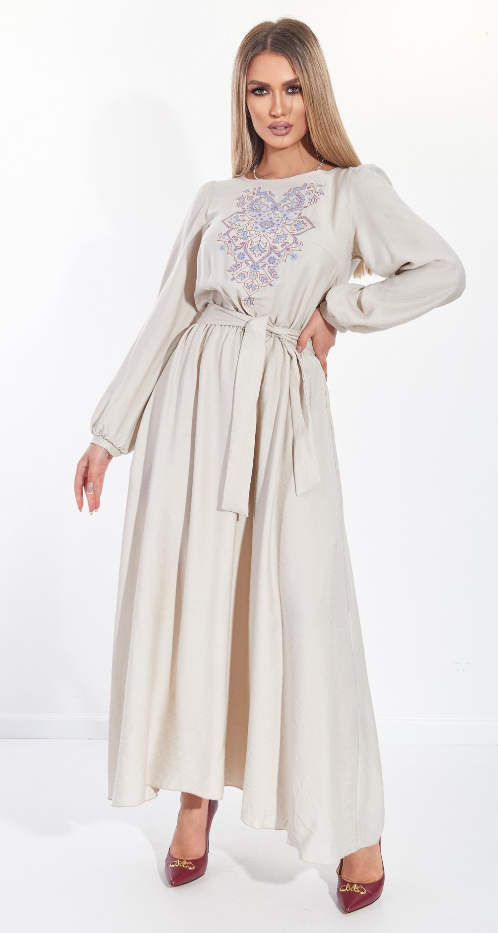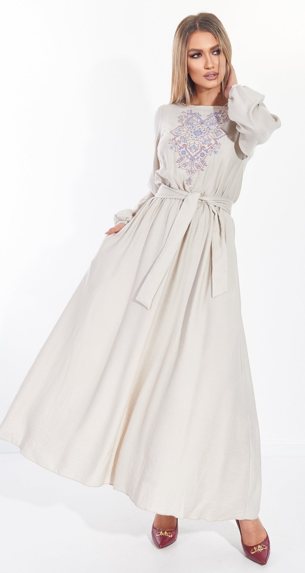 Льняное платье с вышивкой