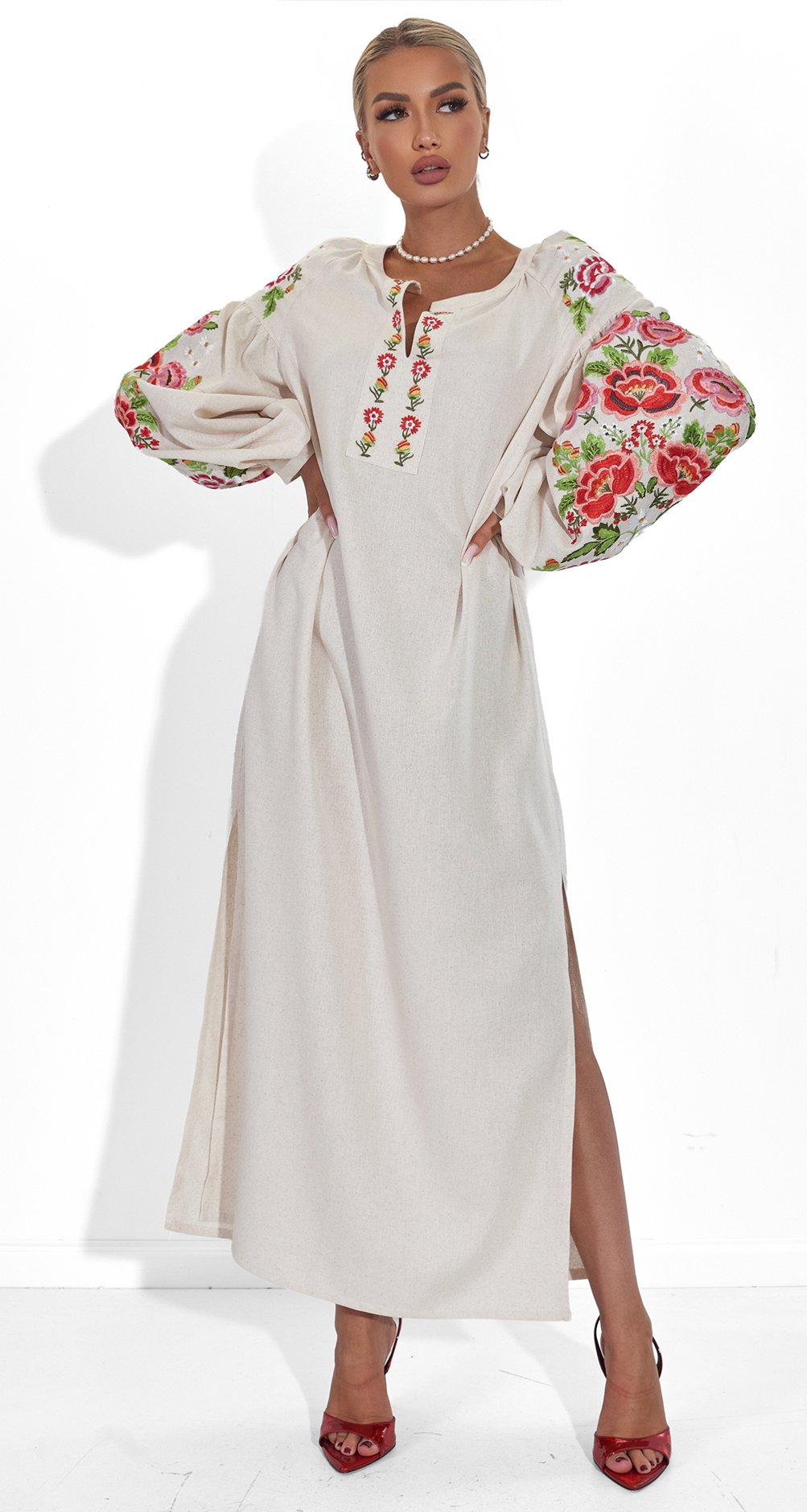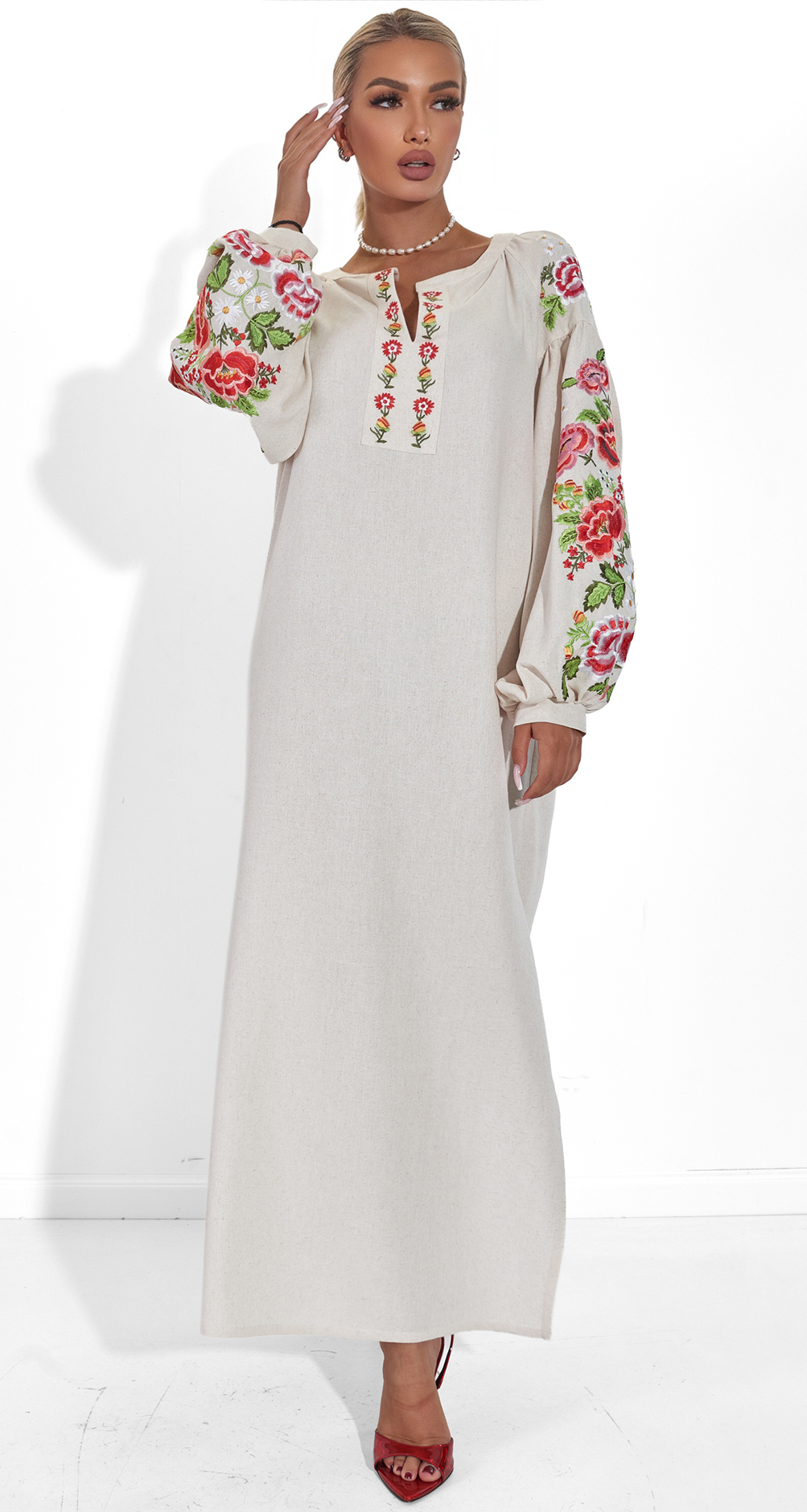 Встречайте лето в новом образе с нашим эксклюзивным льняным платьем-вышиванкой! Это не просто платье, это история, рассказанная с помощью нитей и красок.