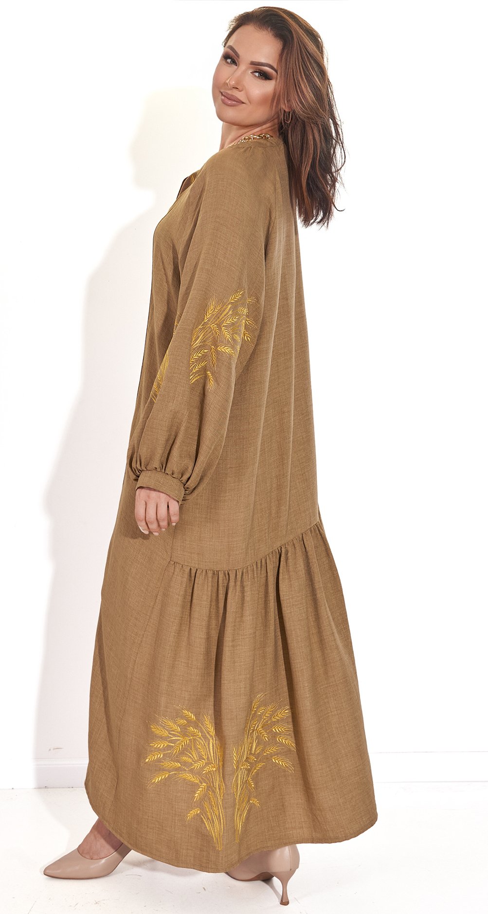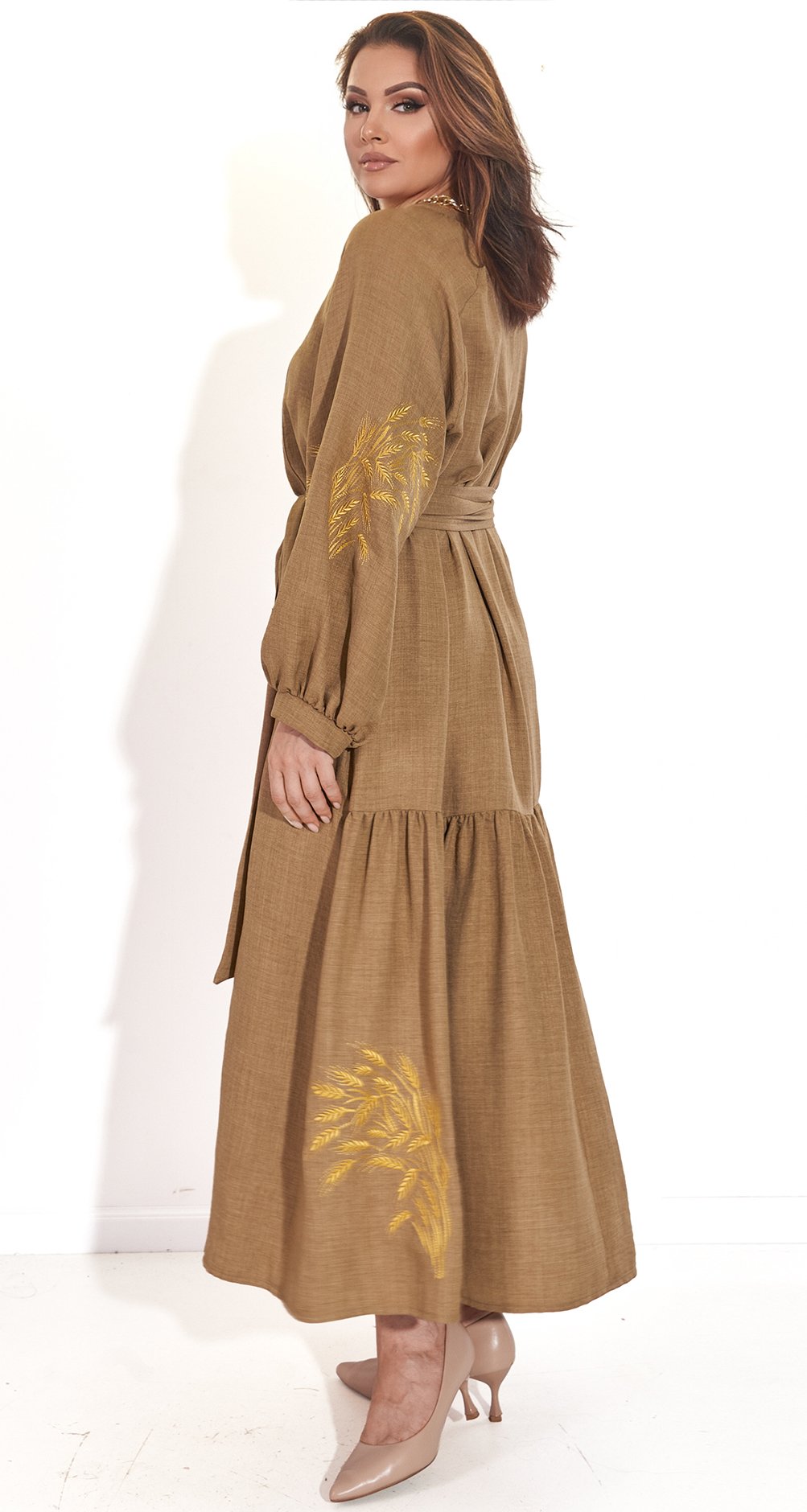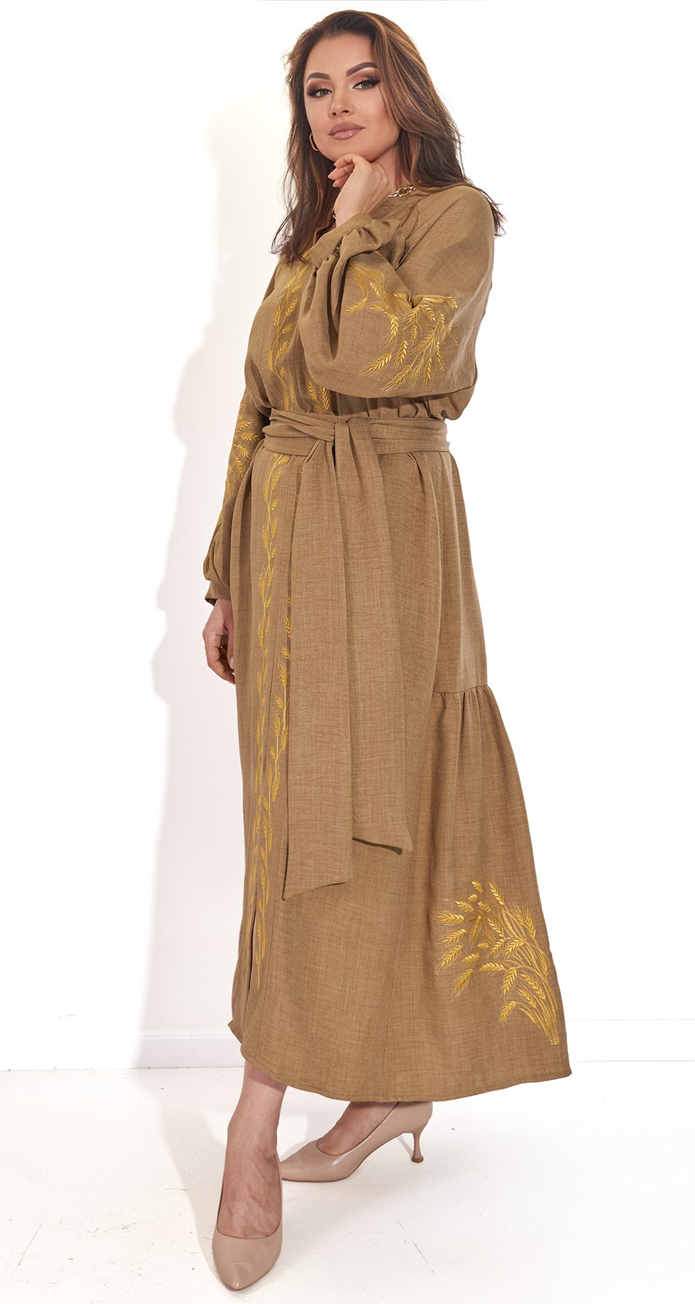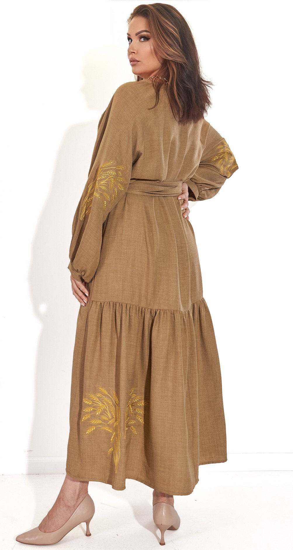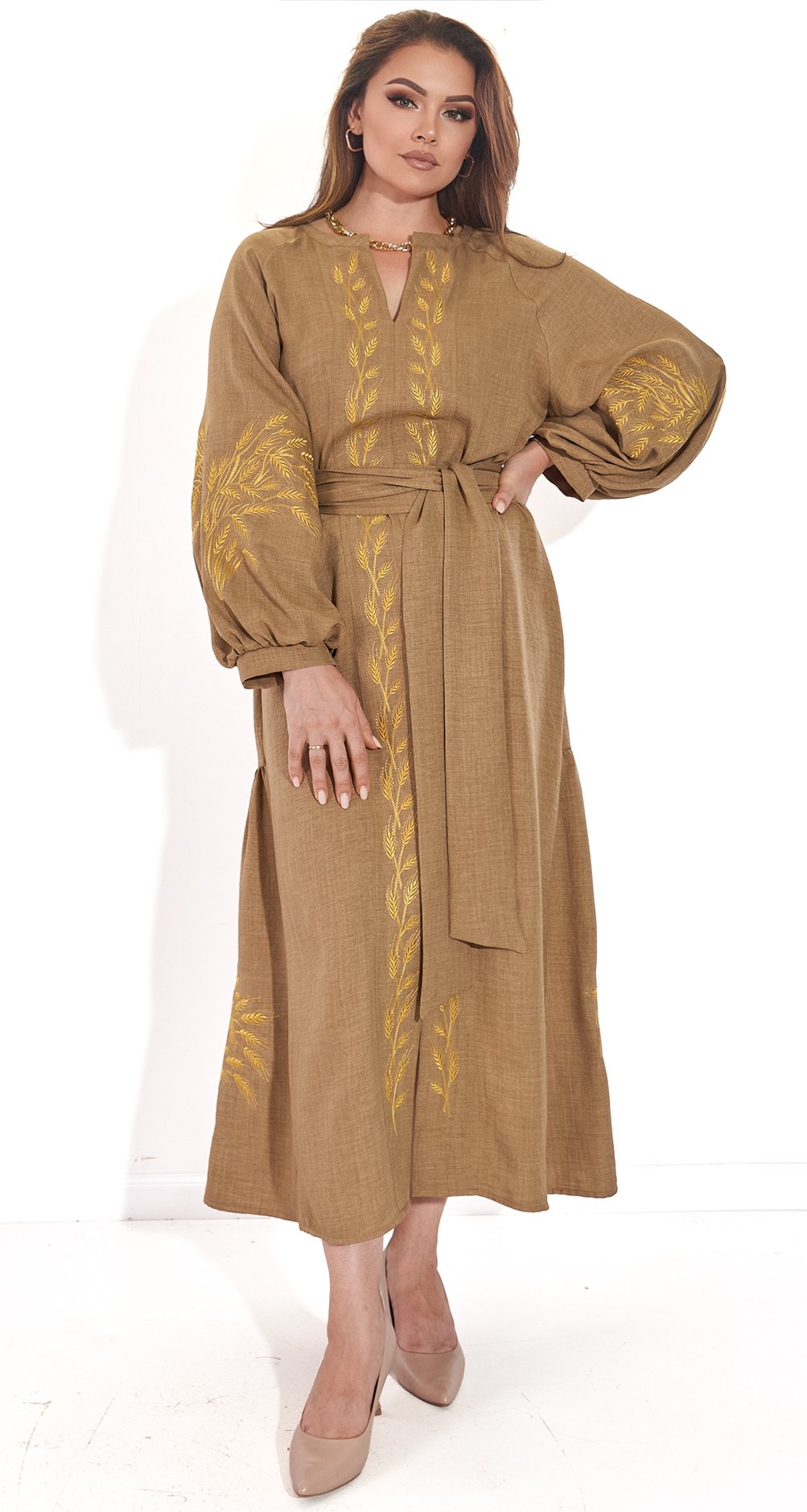 Откройте для себя идеальный баланс комфорта и элегантности. Это свободное льняное платье с изысканной золотой вышивкой — воплощение лёгкости и стиля. Натуральная, дышащая ткань идеально подходит для тёплой погоды, а свободный крой дарит ощущение полной свободы.