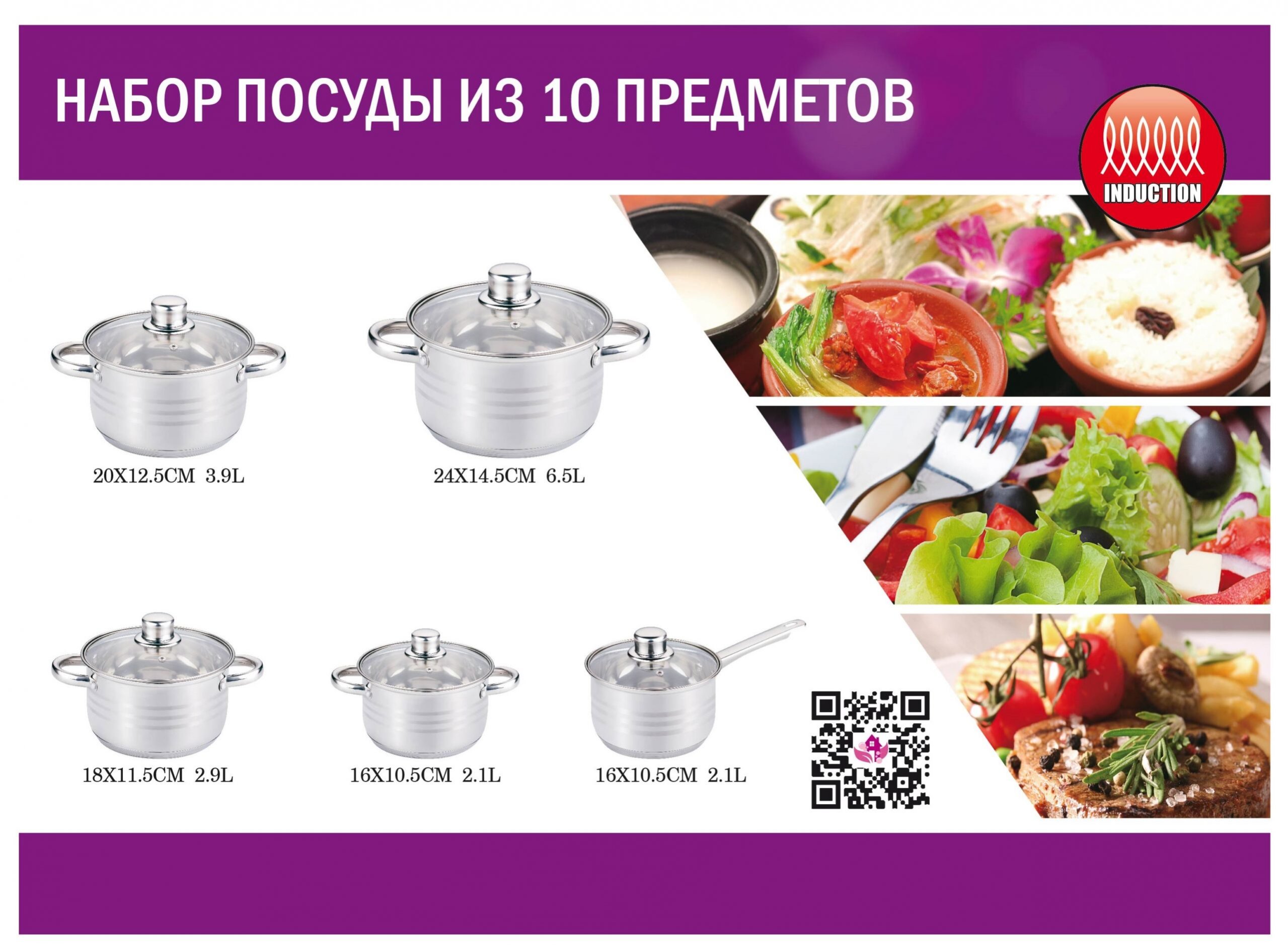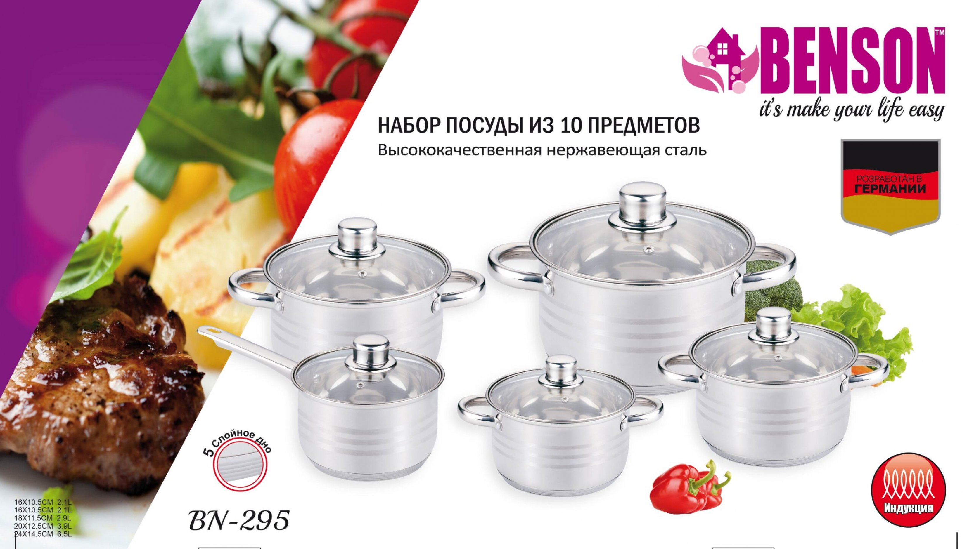 Каталог - Кухня - Посуда для приготовления - Кастрюли - Набор кастрюль 10 предметов нержавейка BN-295