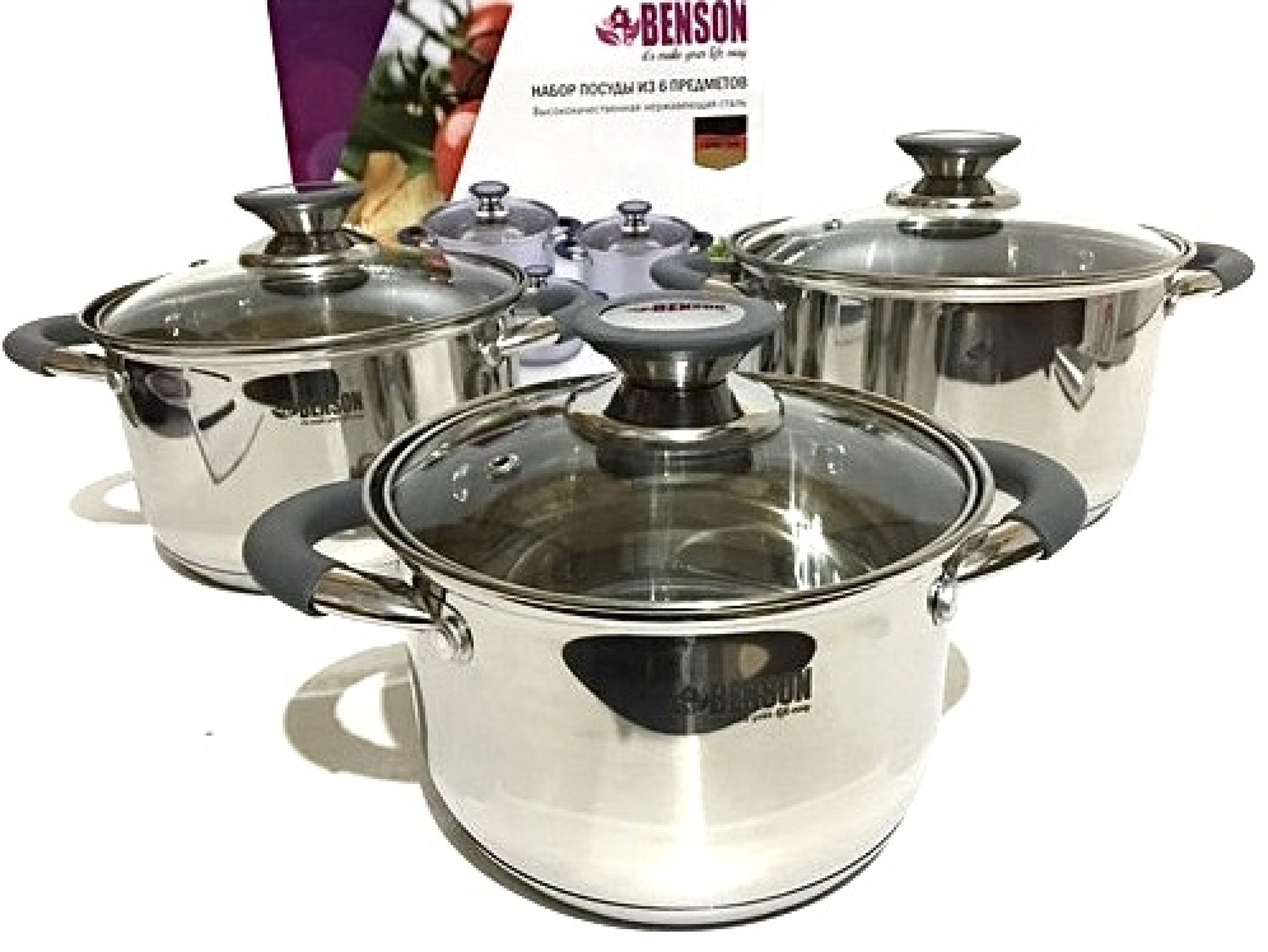 Каталог - Кухня - Посуда для приготовления - Кастрюли - Набор кастрюль 6 предметов нержавейка BN-190