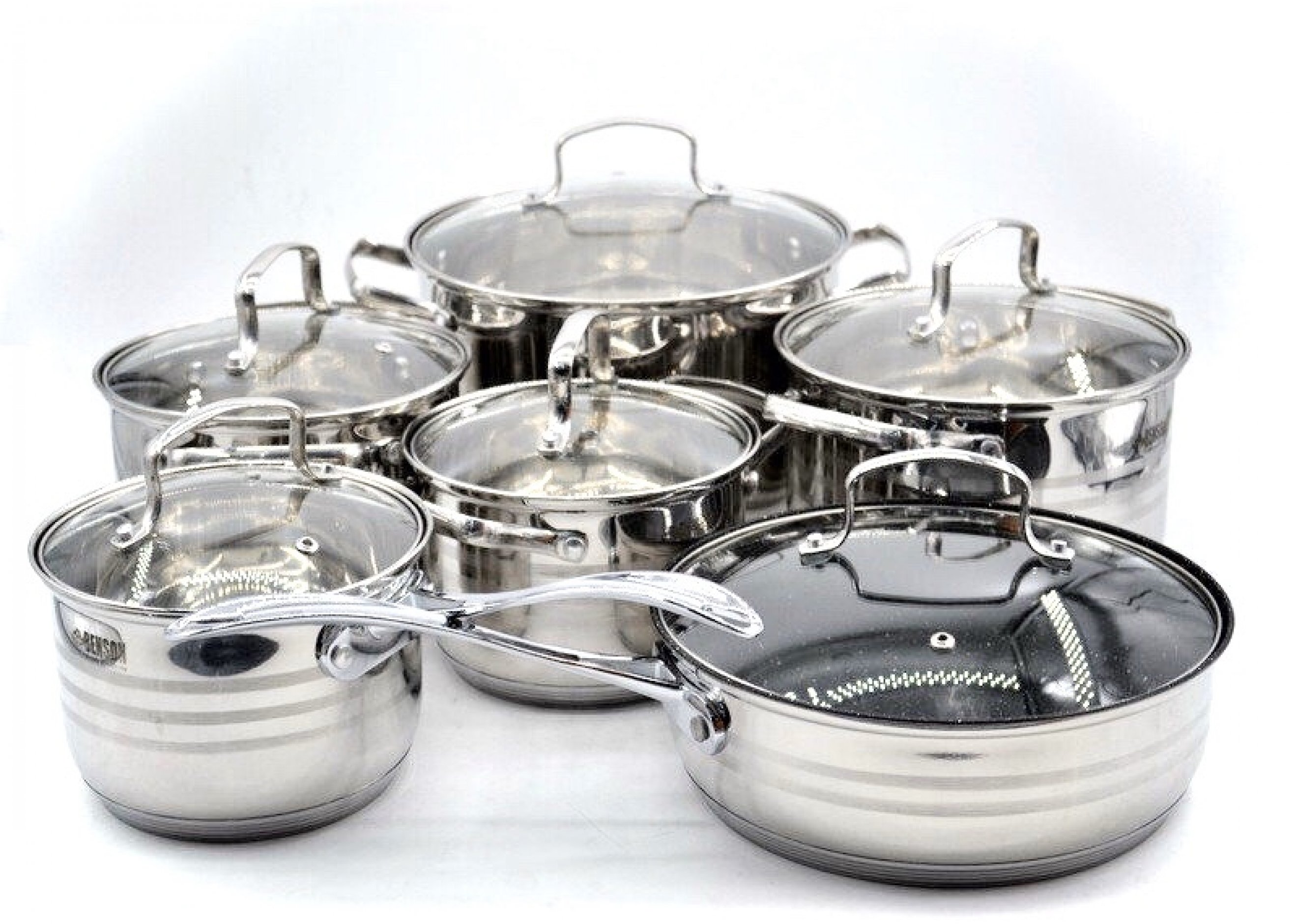 Набор посуды Benson из 12 предметов изготовлен из высококачественной стали.