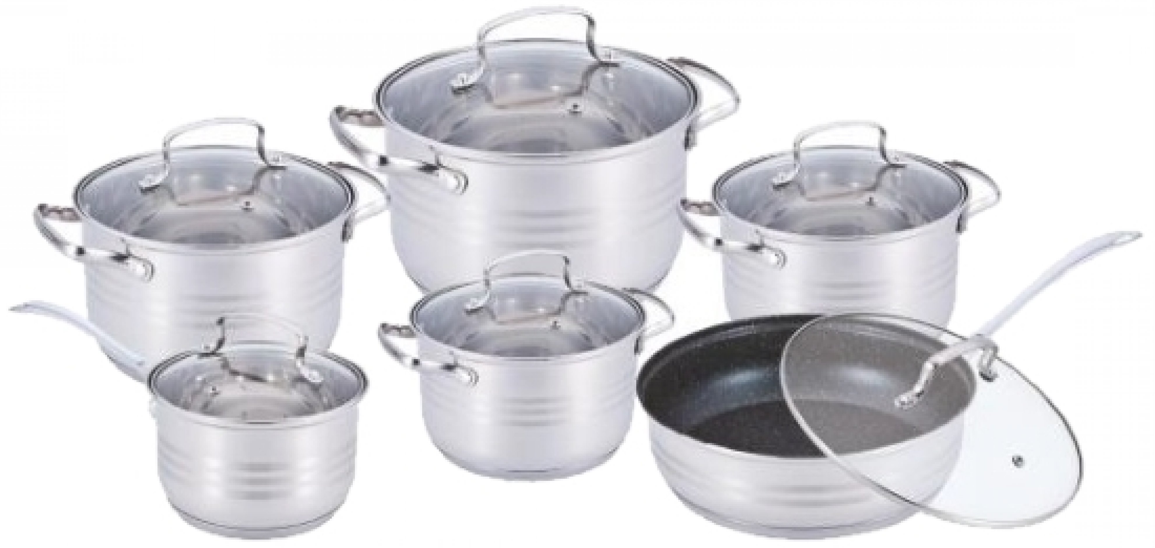 Каталог - Кухня - Посуда для приготовления - Кастрюли - Набор посуды из нержавеющей стали 12 предметов BN-204