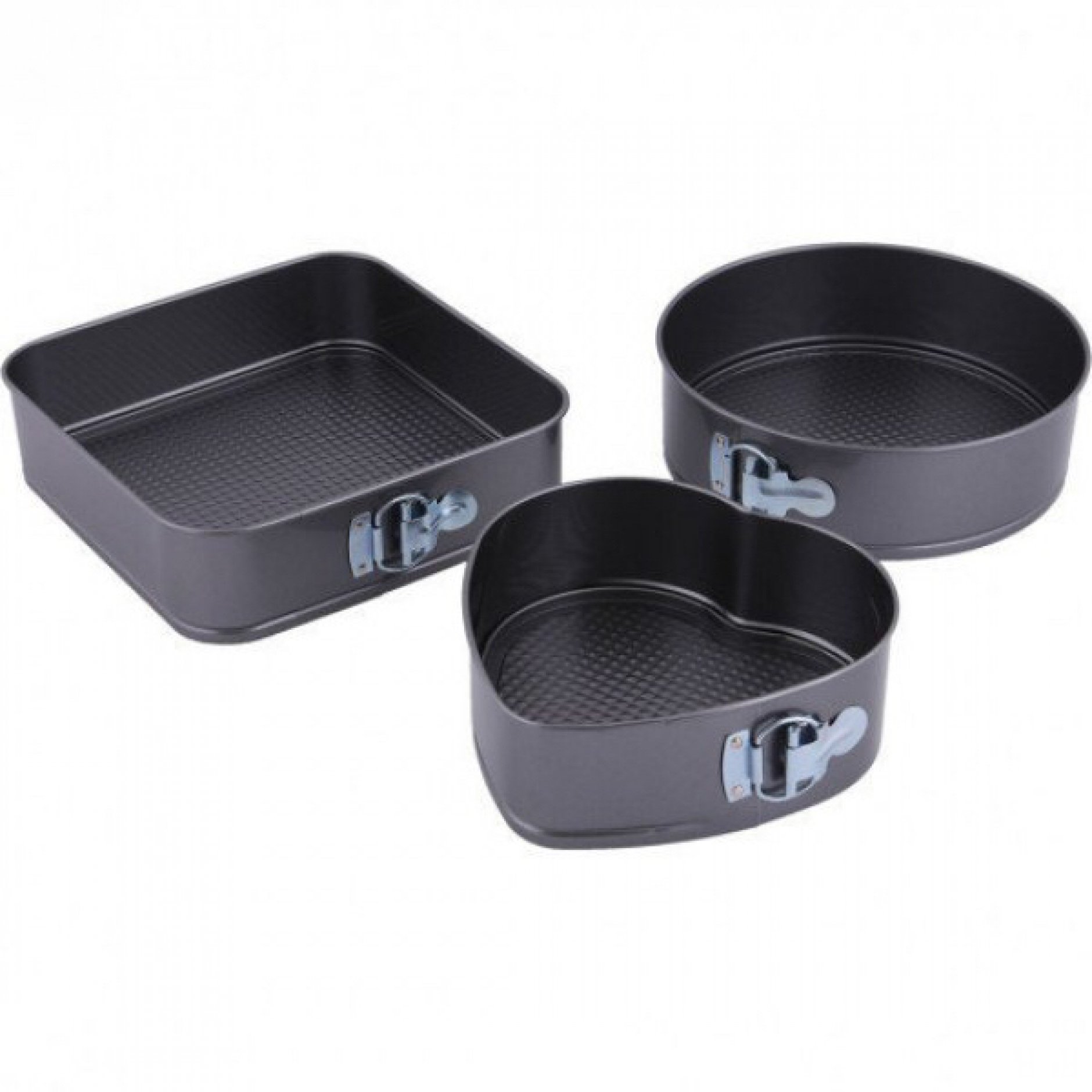 С помощью набора качественных форм для выпечки, Вы сможете придать различную форму всевозможным пирогам, гарнирам, салатам, десертам, тортам. Материал форм — высококачественная нержавеющая сталь с безопасным антипригарным покрытием, которое препятствует пригоранию, а также способно уменьшить необходимое для выпечки время.