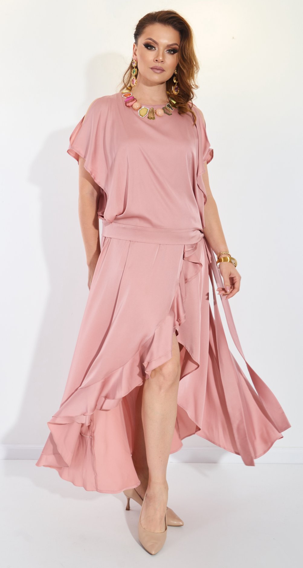 Но компания просит Вас учитывать, что трикотажное платье всегда будет на 10% меньше чем платье из текстиля, по своим обмерным данным! В этом случае оно выглядит более эстетично и женственно.