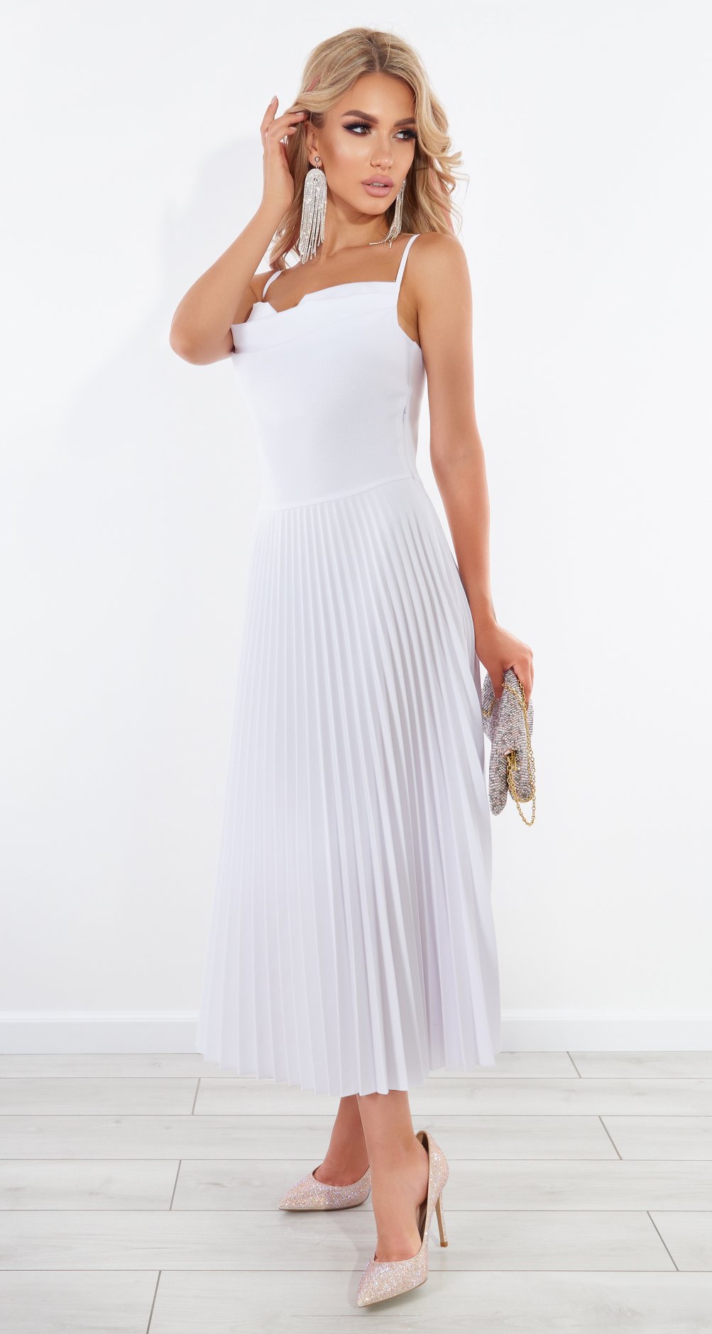 Красивое белое платье с юбкой