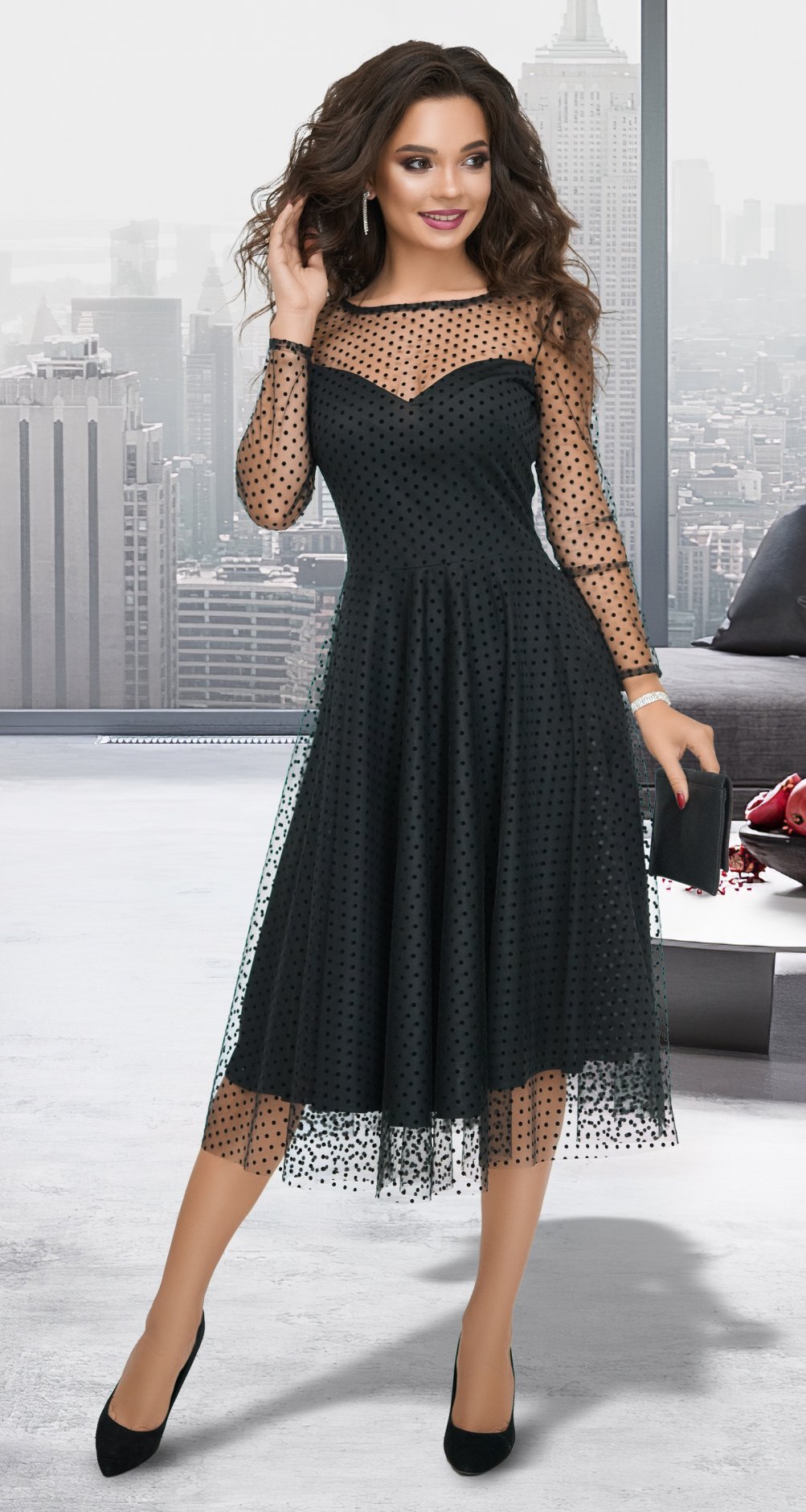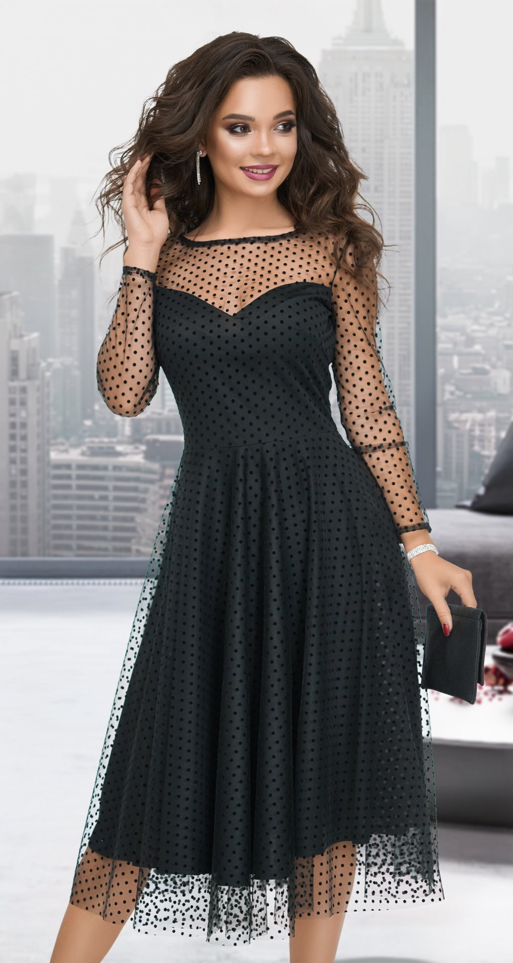 Платье из нарядной сеточки с бархатными точками. Полностью на подкладке.