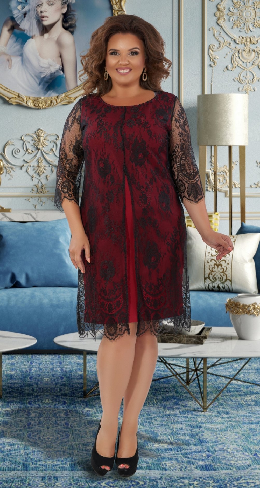 Модель платья имитирует костюм с гипюровой накидочкой.