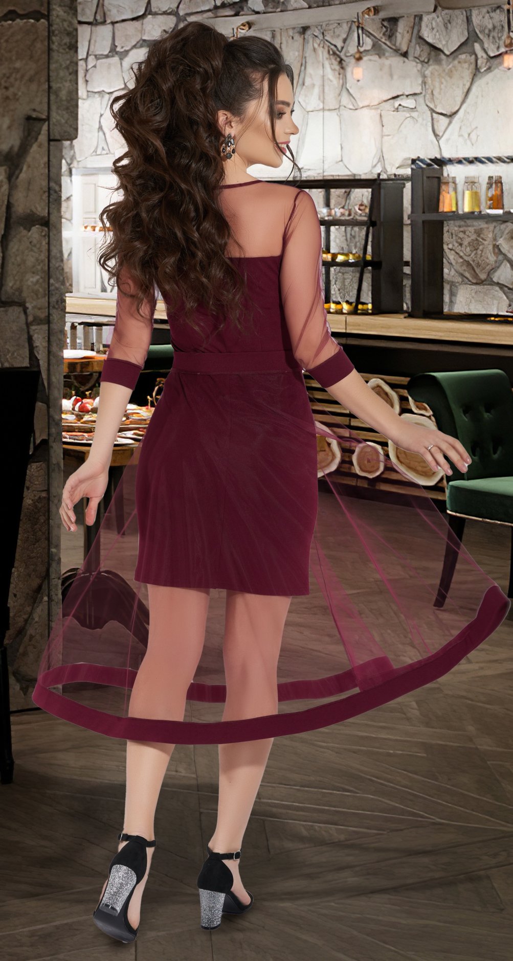 Юбочка сшита из нарядной полу-матовой сеточки.Из нее же выполнена и отделка самого платья.