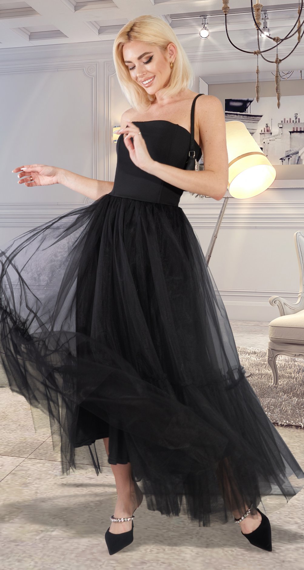 Лёгкая и воздушная юбка- пачка и лаконичный корсет на косточках , создают нежный и стильный образ!