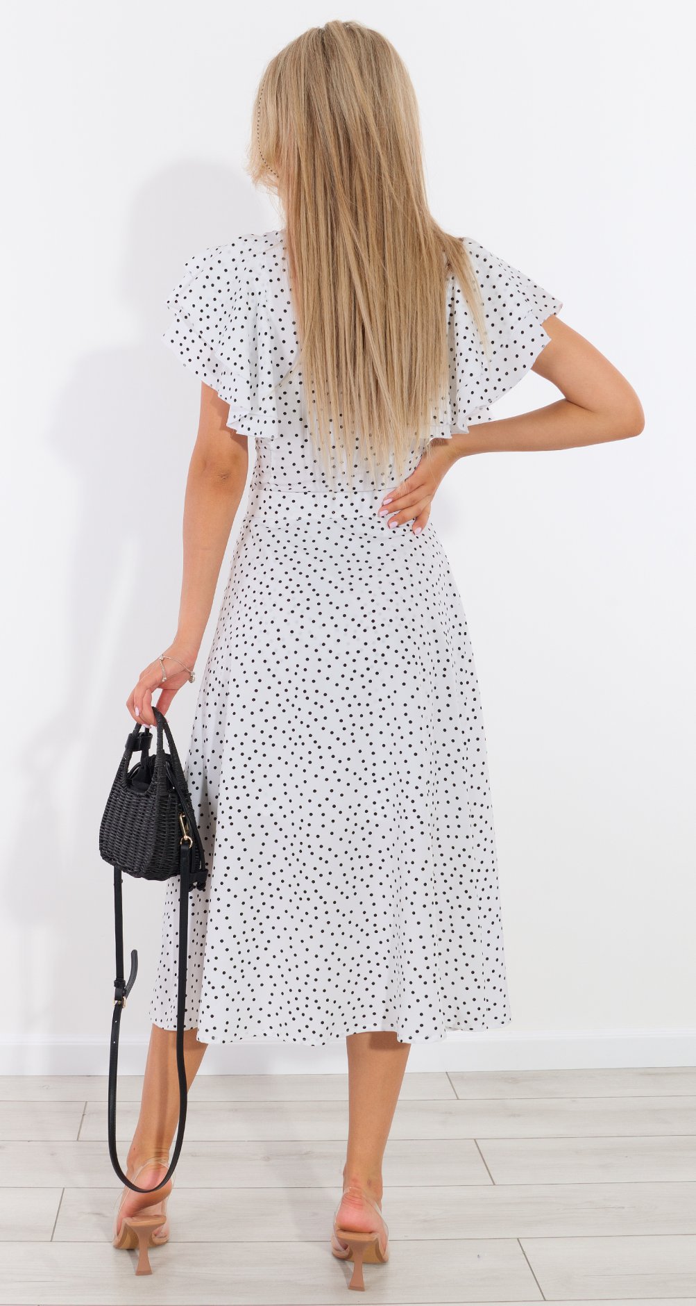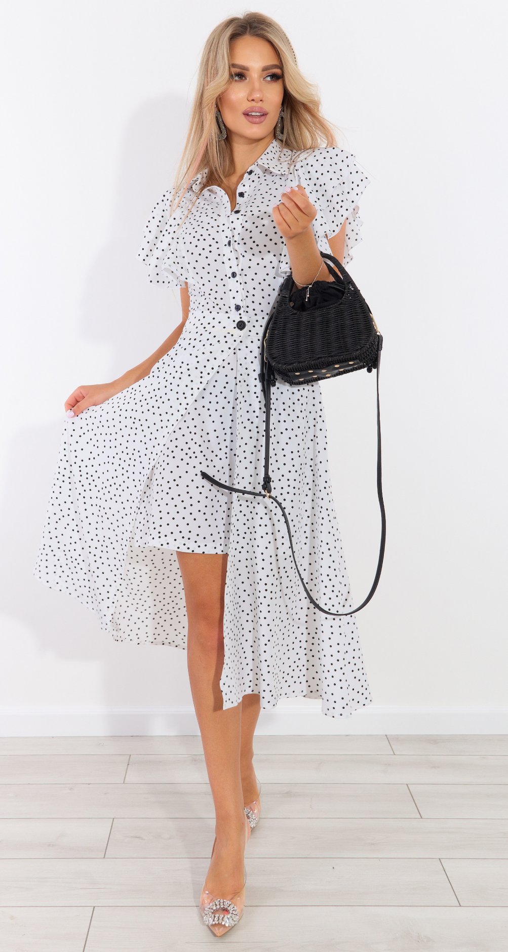 Сшито из лёгкой струящейся ткани с принтом в горошек!