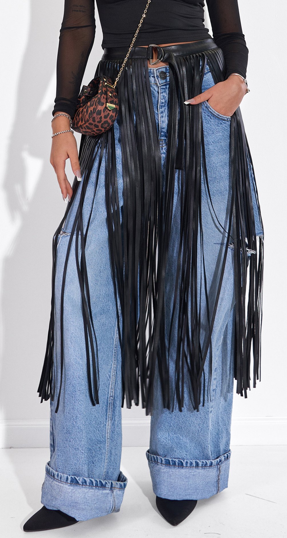 Представляем самый горячий тренд сезона — Пояс-Фриндж из премиальной эко-кожи! Этот аксессуар не просто дополнит ваш наряд, он сделает его!