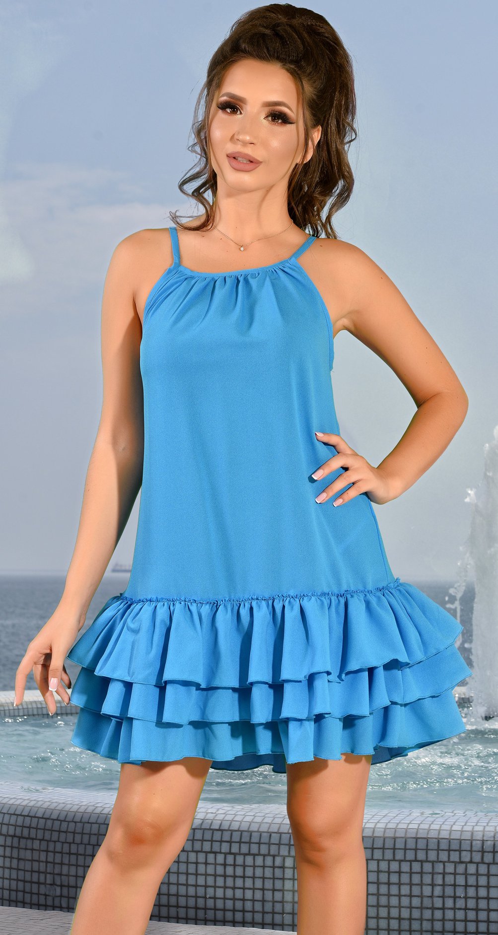 Оформить заказЛёгкое летнее платье на тонких бретельках, свободного фасона.