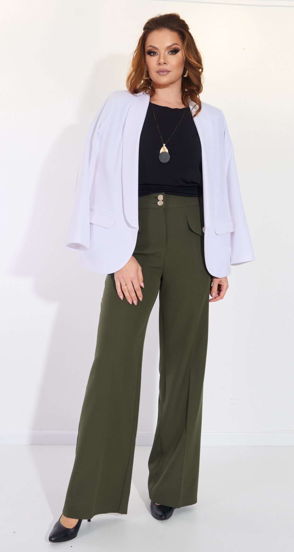 Такая модель брюк сейчас самая модная! И она хорошо выглядит как с блузками, так и со свитерами, и с пиджаком!