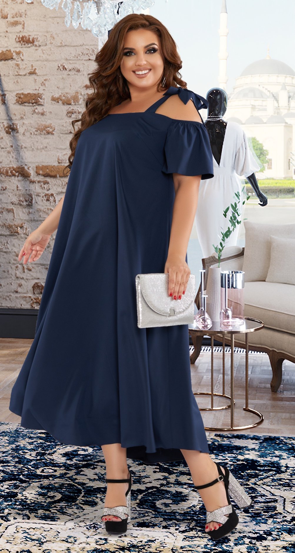 Каталог - Платья - Платья больших размеров - Расклешенный сарафан с завязками большого размера