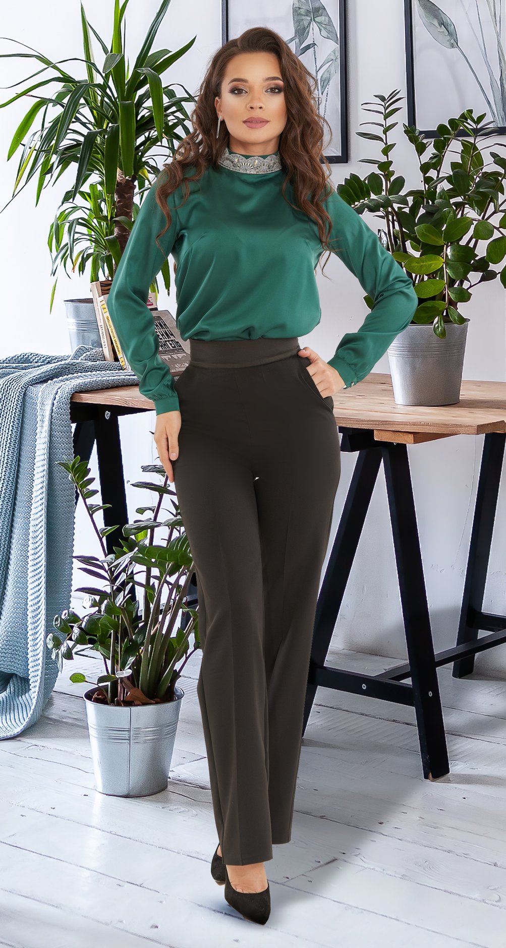 Шикарная шёлковая блузка с воротничком-стойкой!