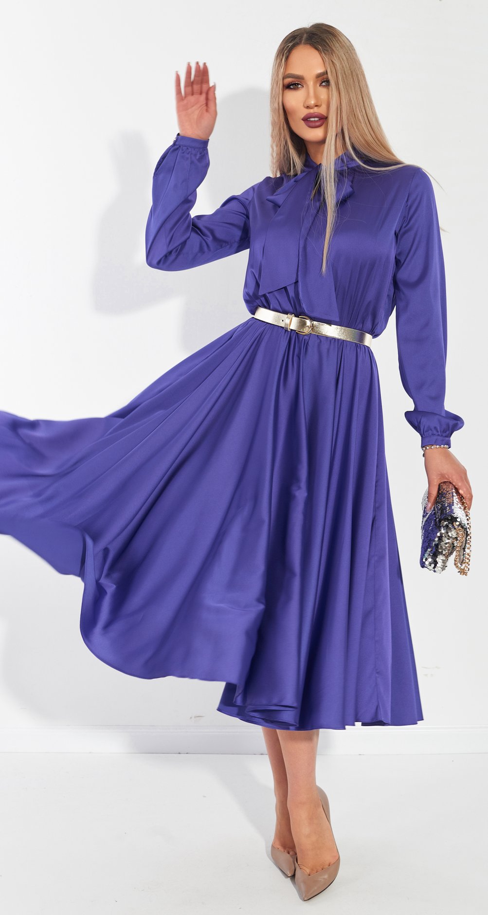 Струящаяся юбка и лаконичный верх с бантом и не большим напуском.