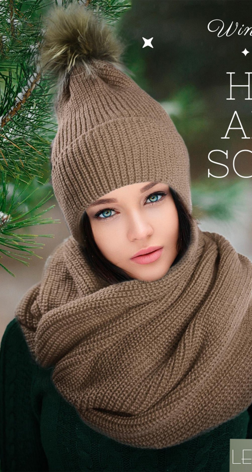 Объёмный снуд и аккуратная шапочка . Помпон из натурального меха.