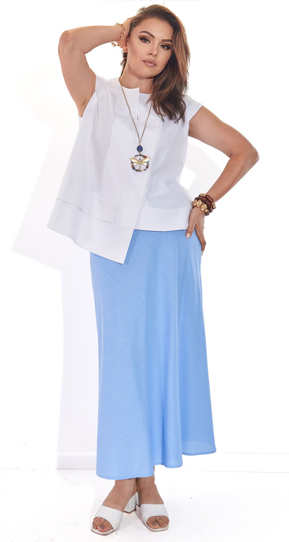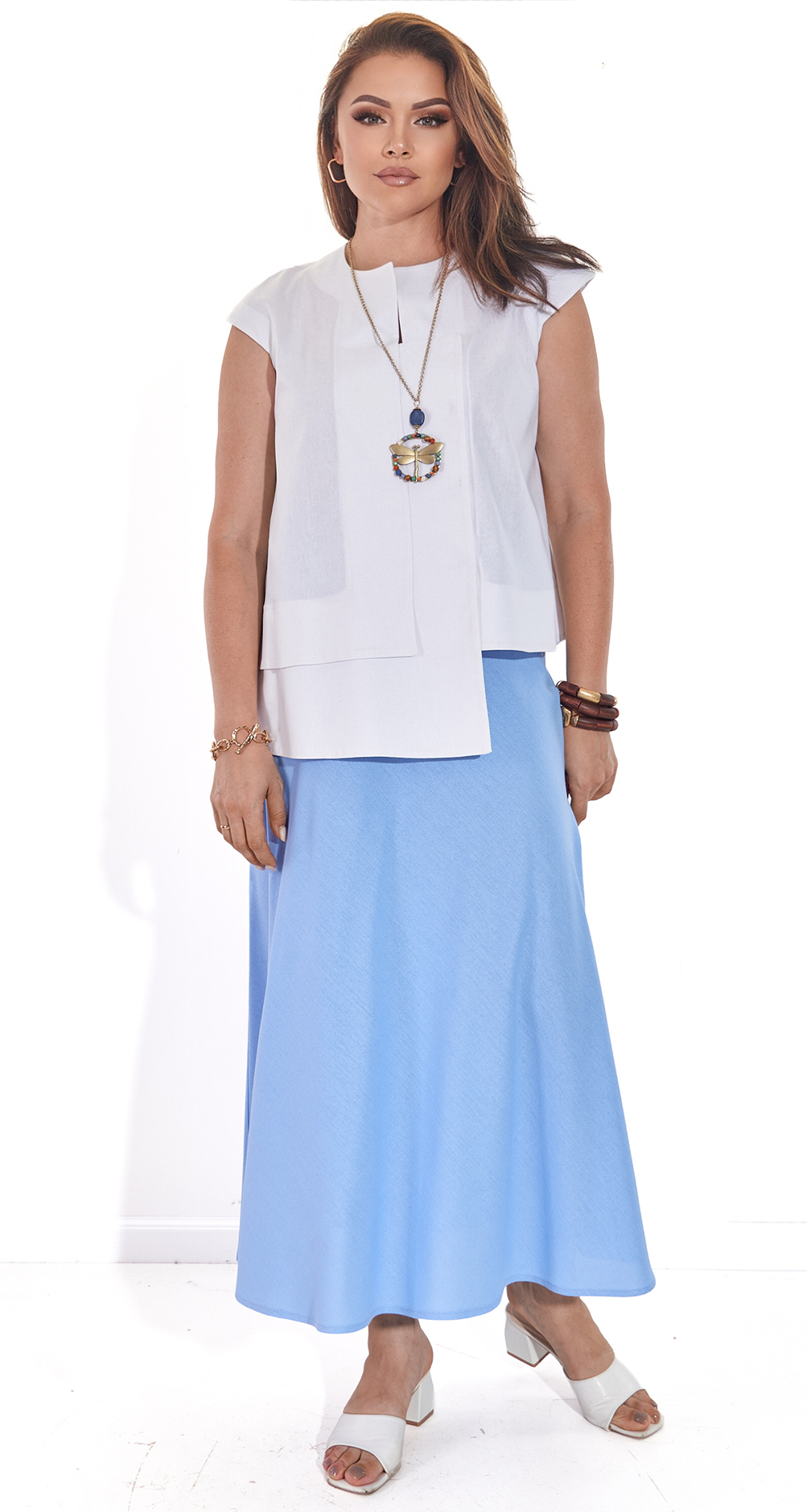​Почувствуйте себя безупречно в этом минималистичном и невероятно стильном льняном комплекте. Сочетание архитектурной блузки и струящейся юбки создает образ, достойный модных показов.