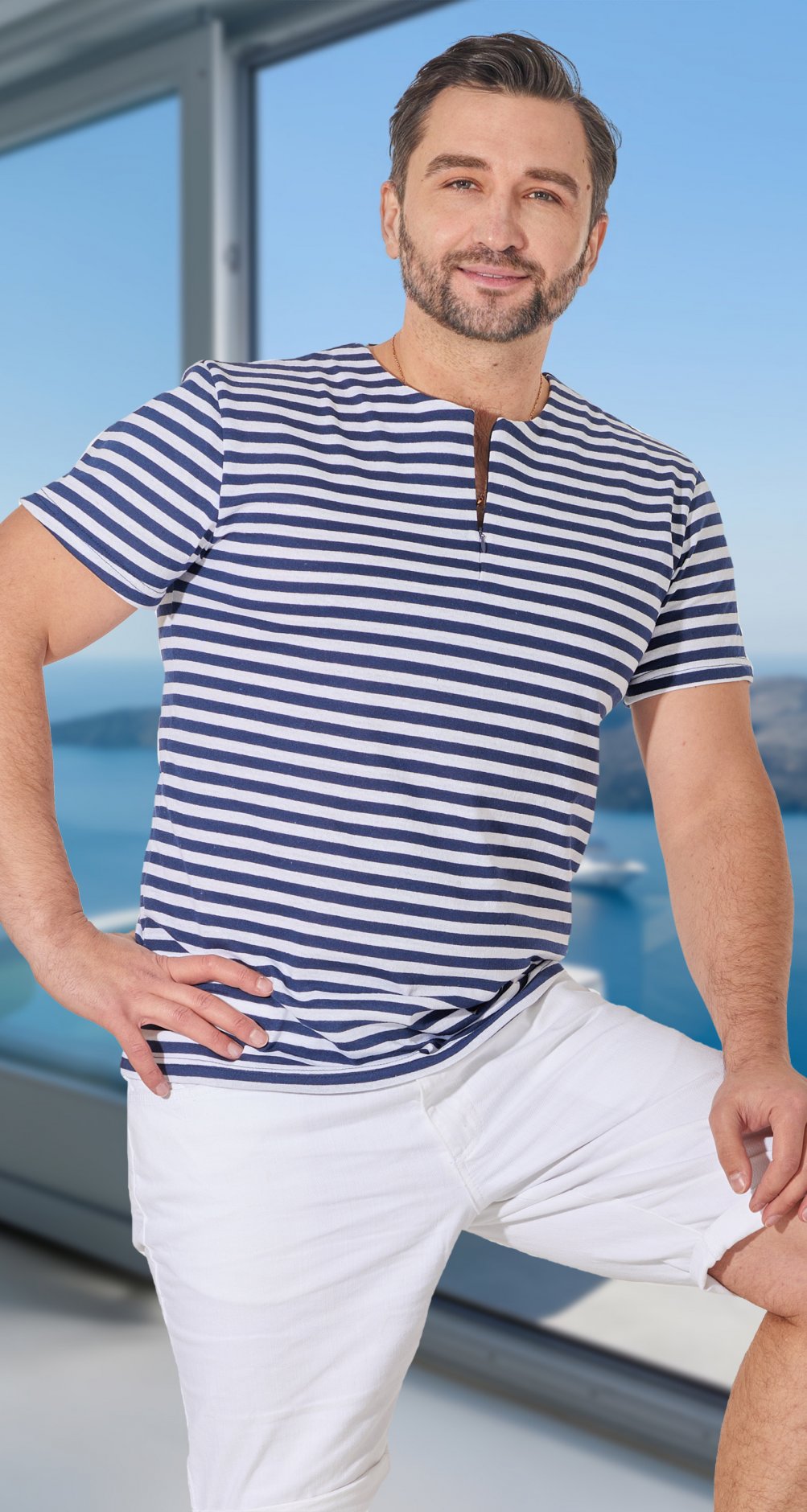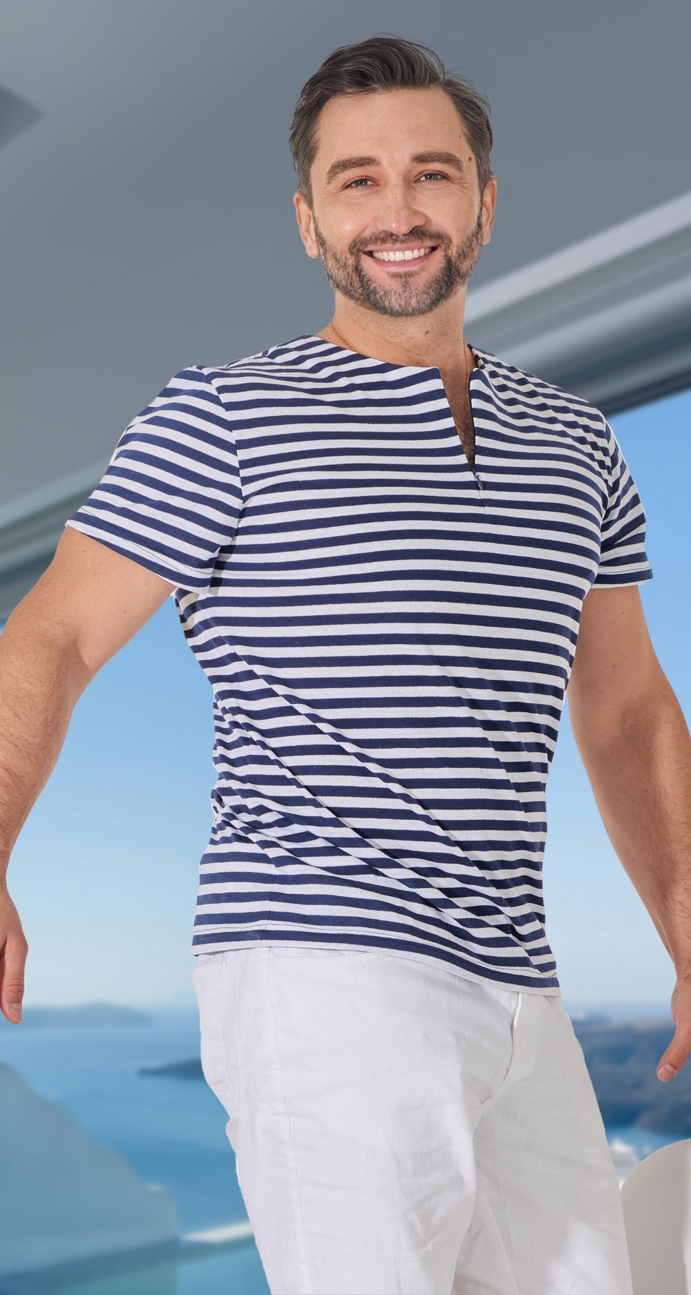 Стильная трикотажная рубашка в полоску!
