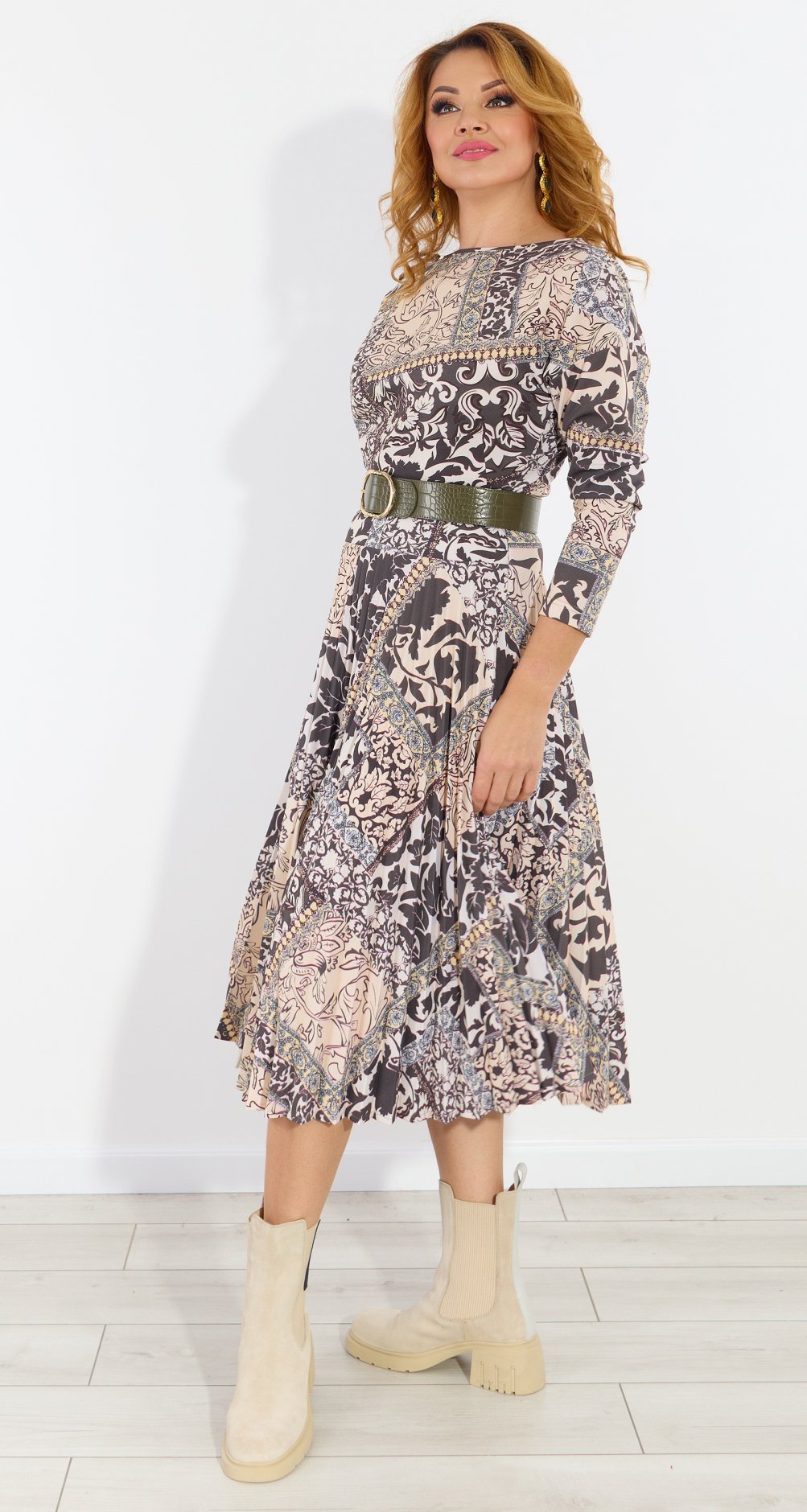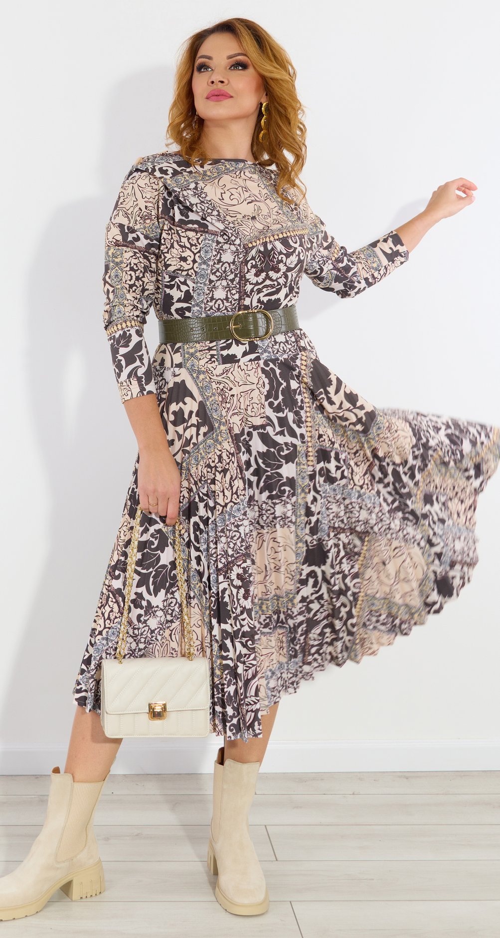 Универсальный Фасон: Классический вырез "челнок" и рукав 3/4 или длинный (в зависимости от модели) создают идеальный баланс. Платье отлично садится на любую фигуру, подчеркивая талию (особенно с поясом!).