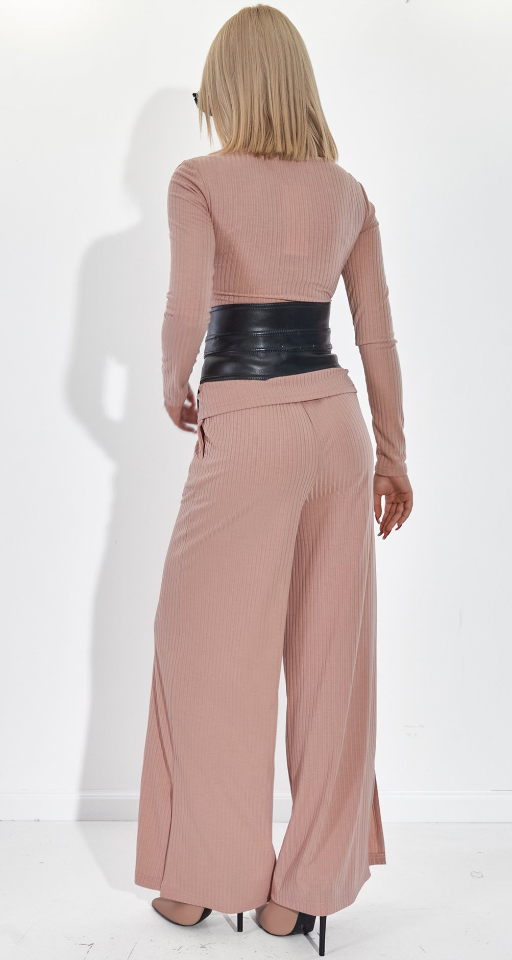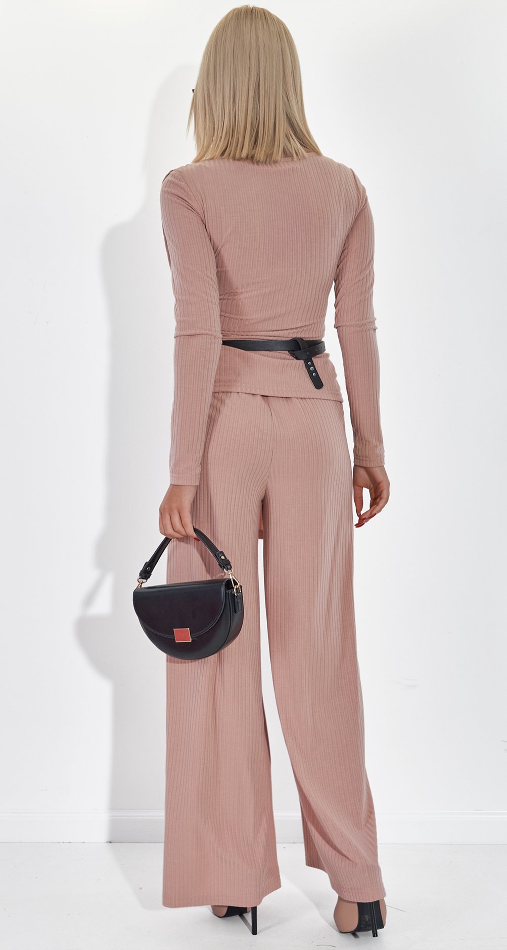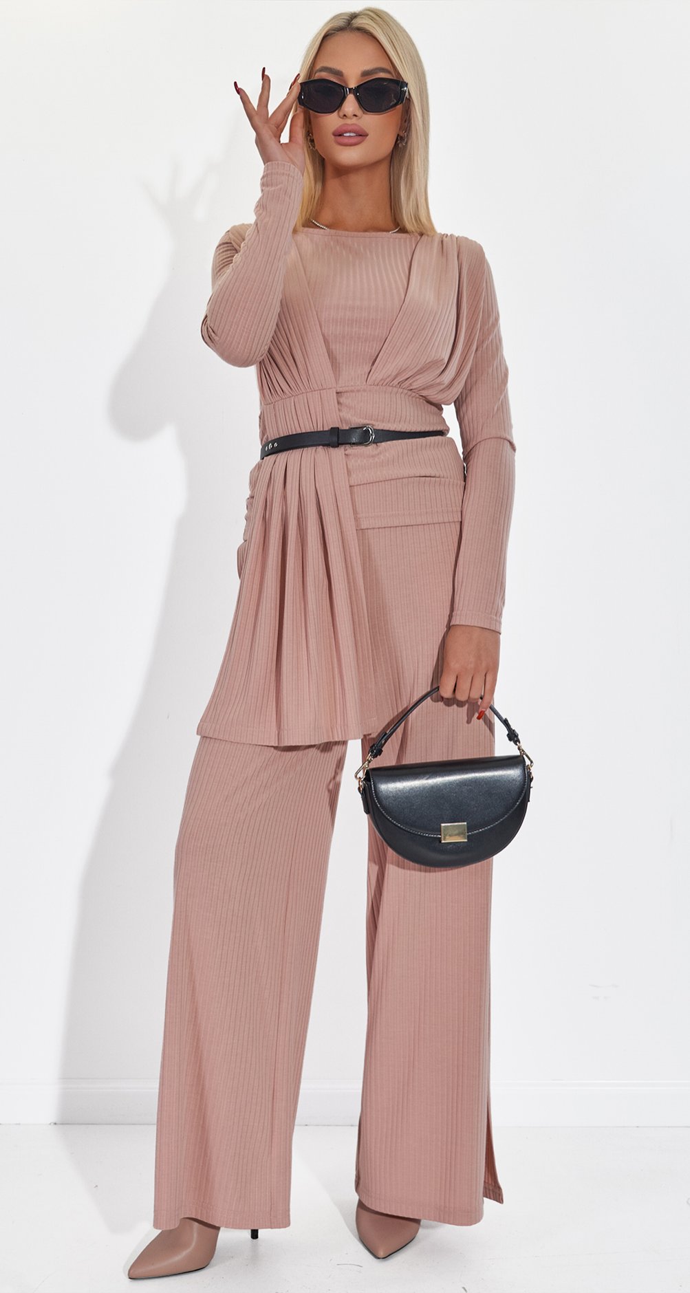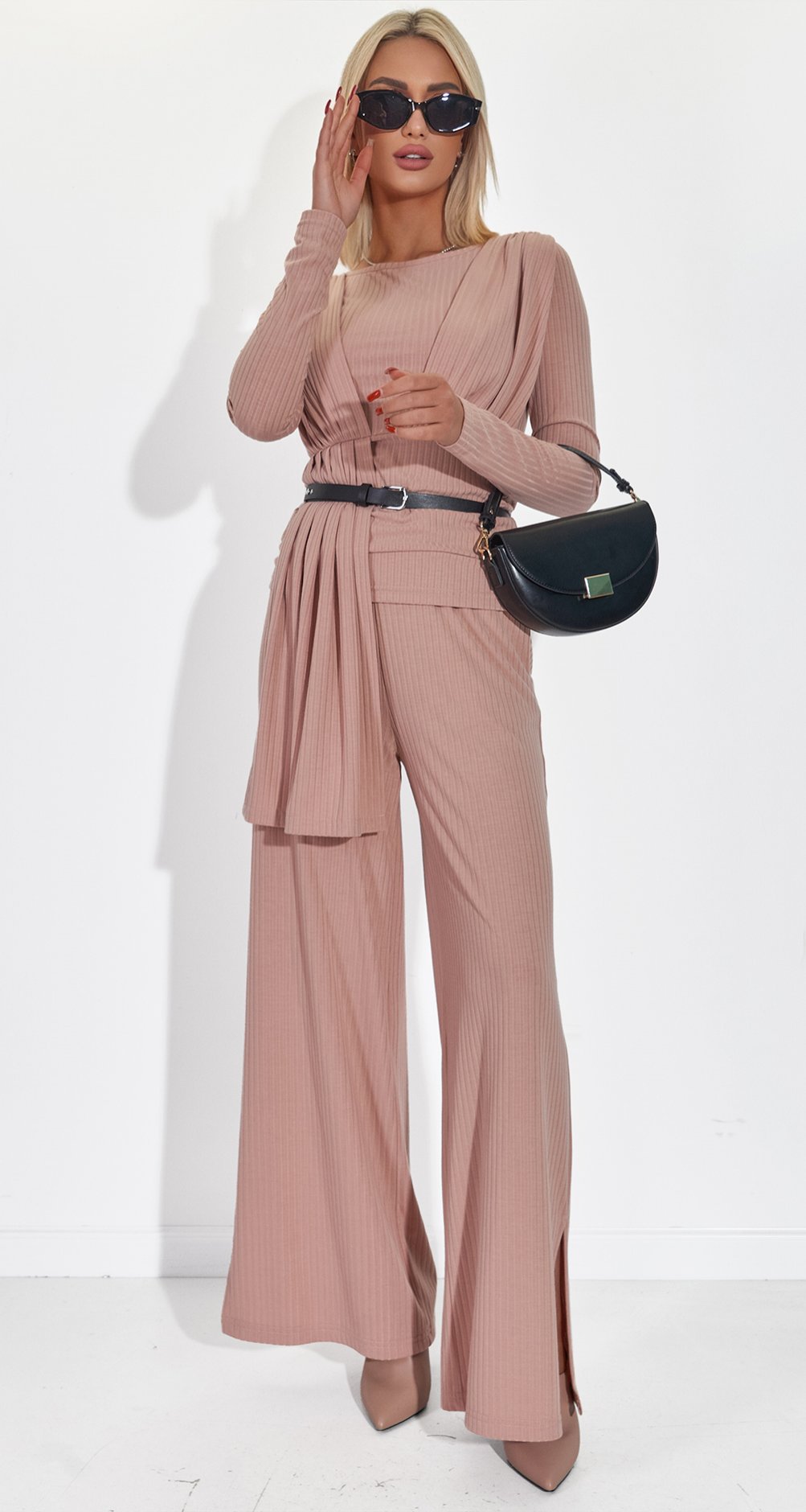Этот костюм — настоящая находка для тех, кто следит за модой! Широкие брюки и топ сложного кроя мгновенно выводят ваш образ на новый уровень.