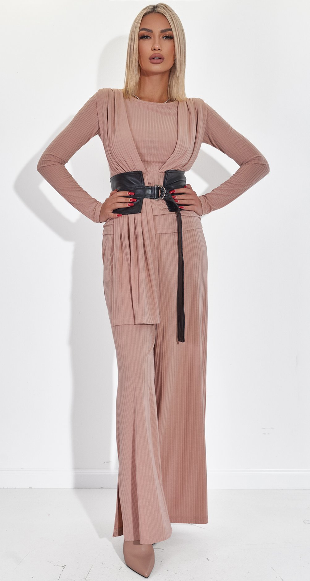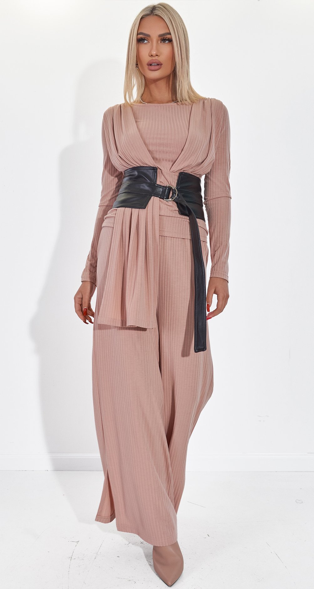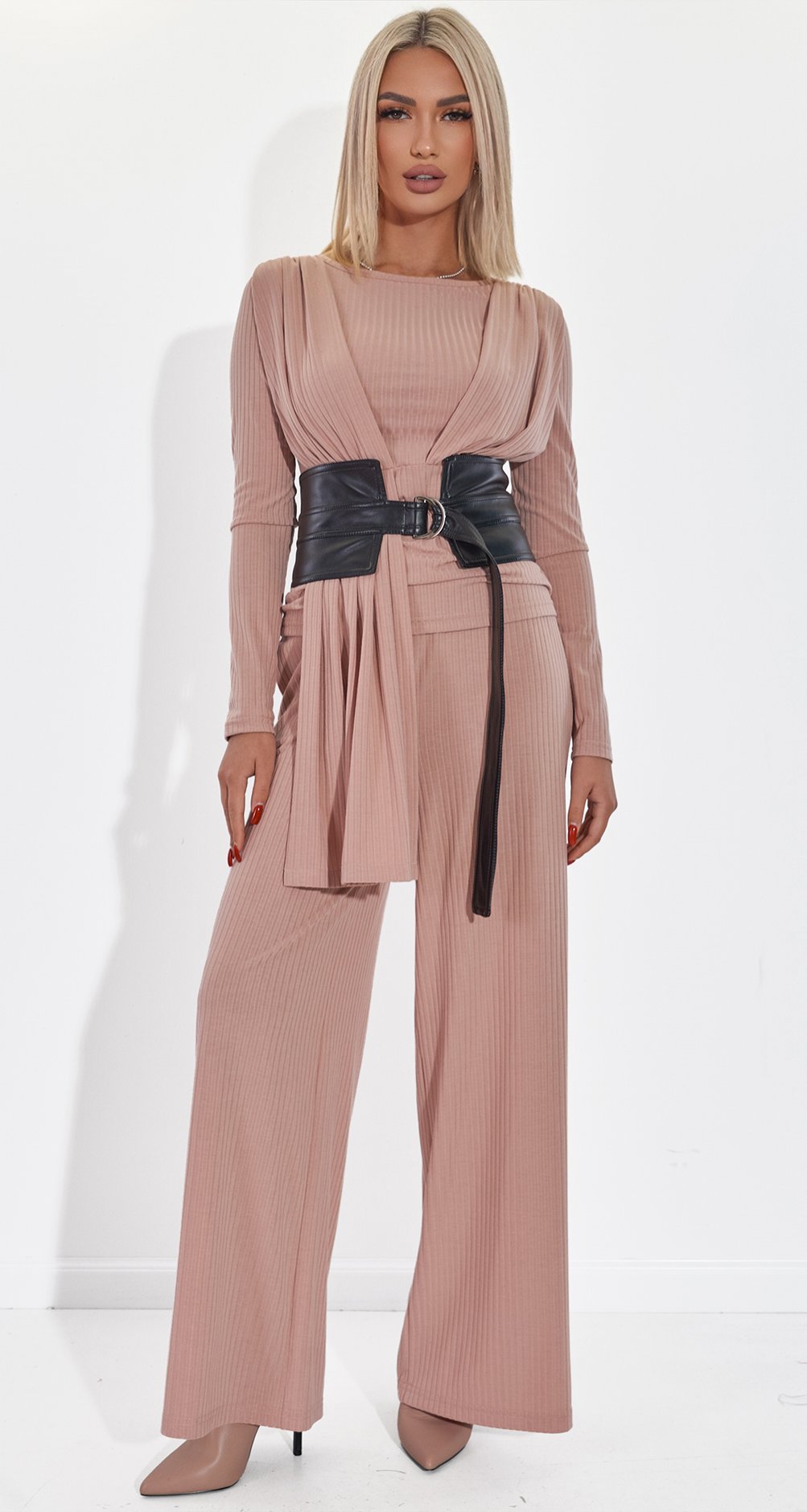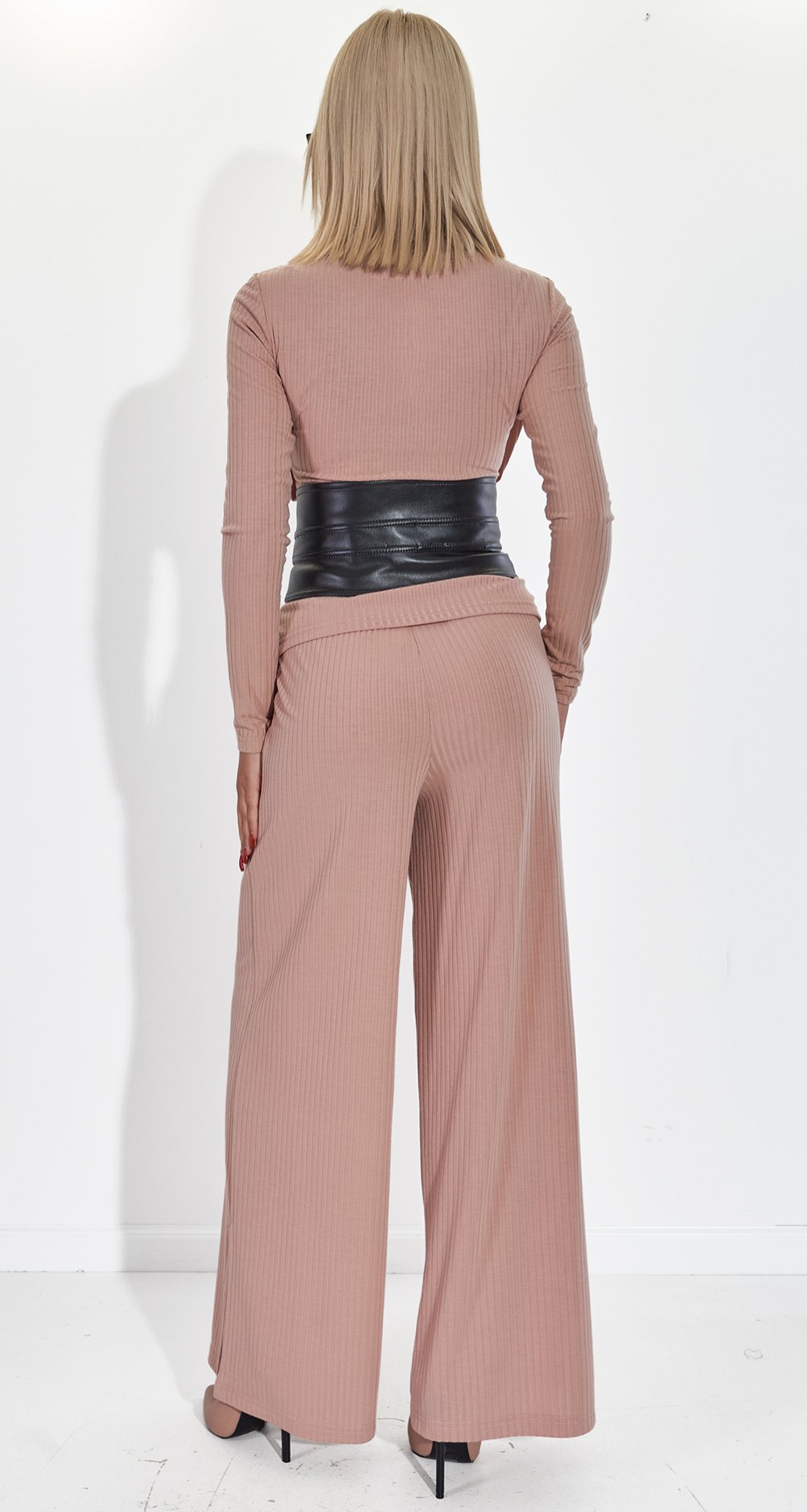 Этот костюм — настоящая находка для тех, кто следит за модой! Широкие брюки и топ сложного кроя мгновенно выводят ваш образ на новый уровень.