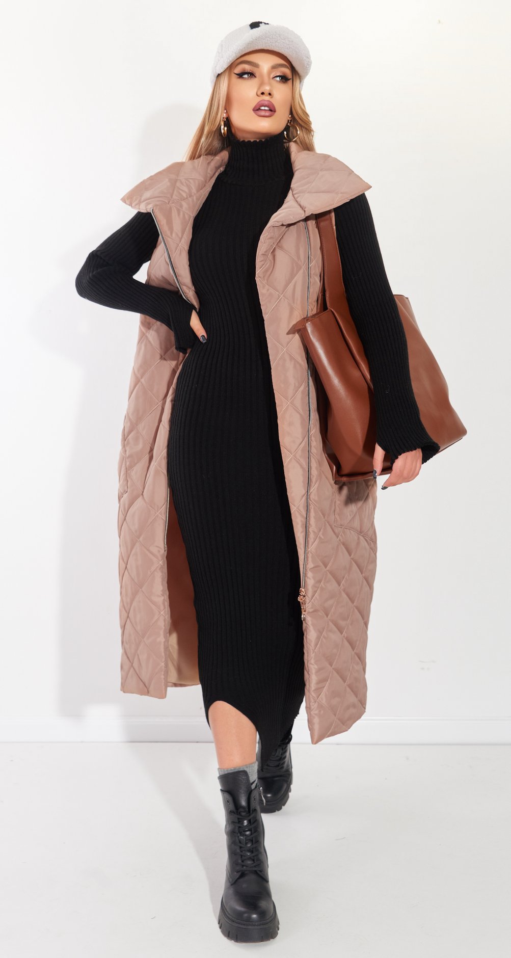 Стильное полупальто-без рукавов, на утеплителе и тонкой подкладке!