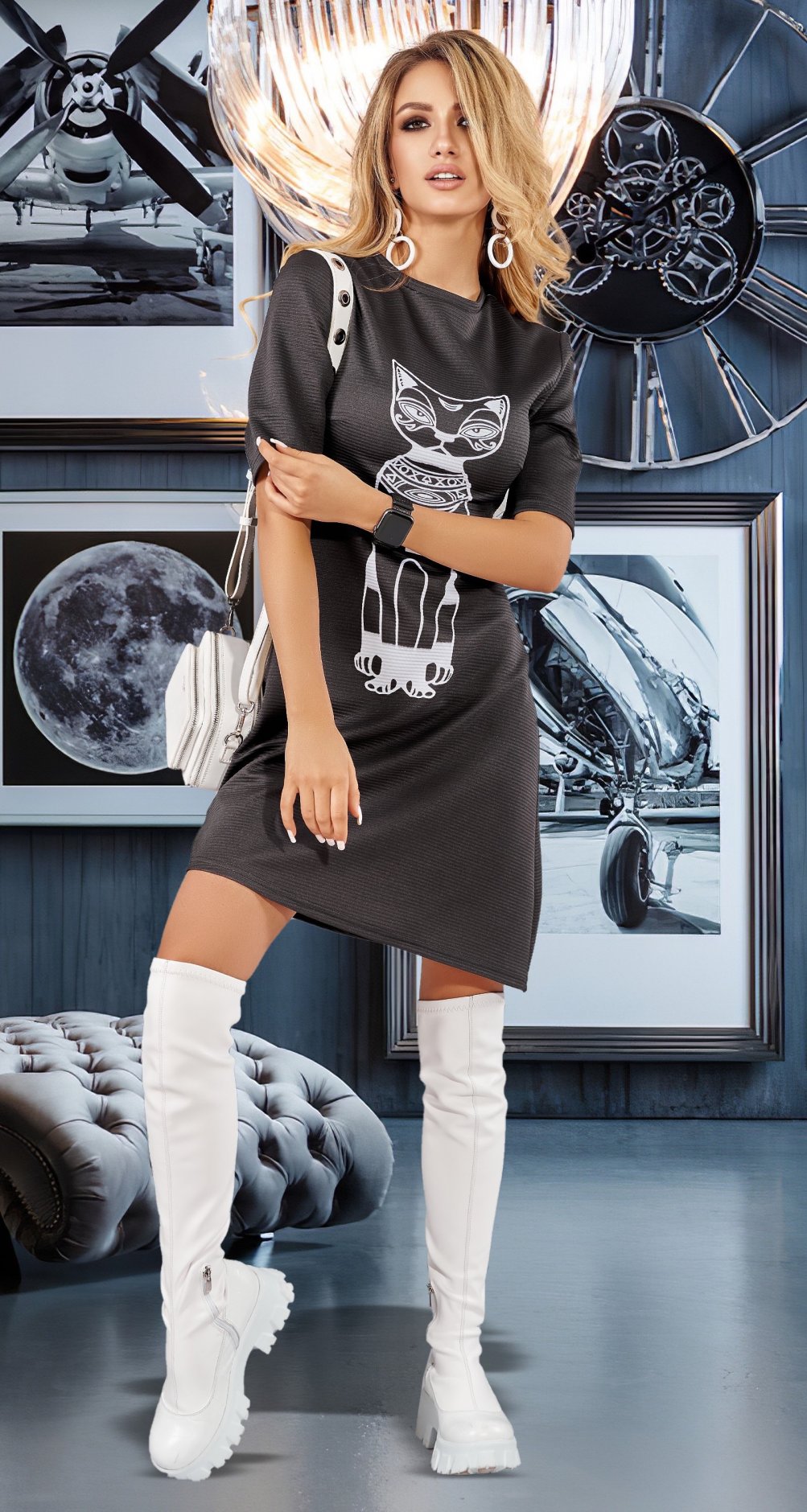 Но компания LEMANTA просит Вас учитывать, что трикотажное платье всегда будет на 10% меньше чем платье из текстиля, по своим обмерным данным! В этом случае оно выглядит более эстетично и женственно.