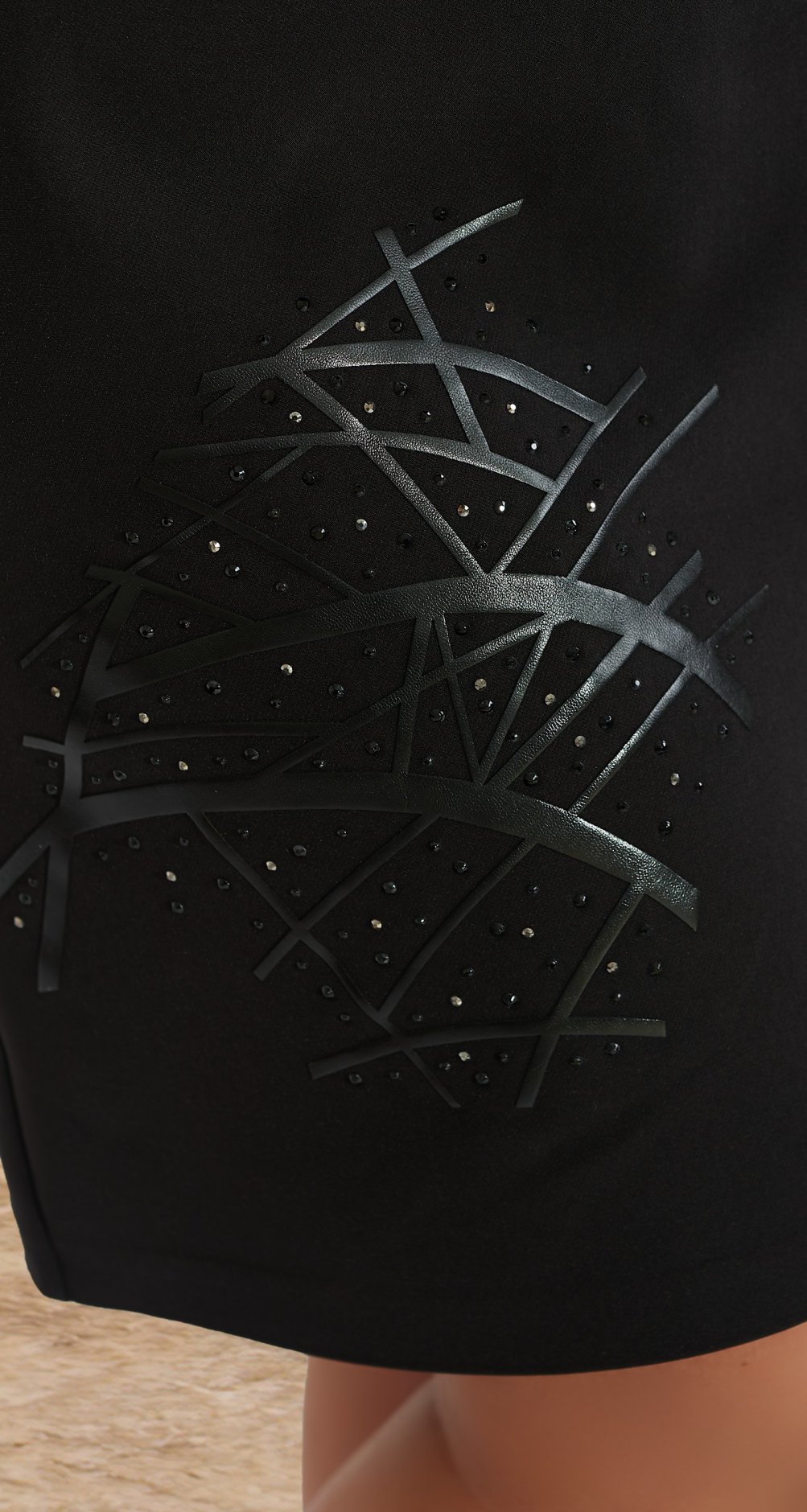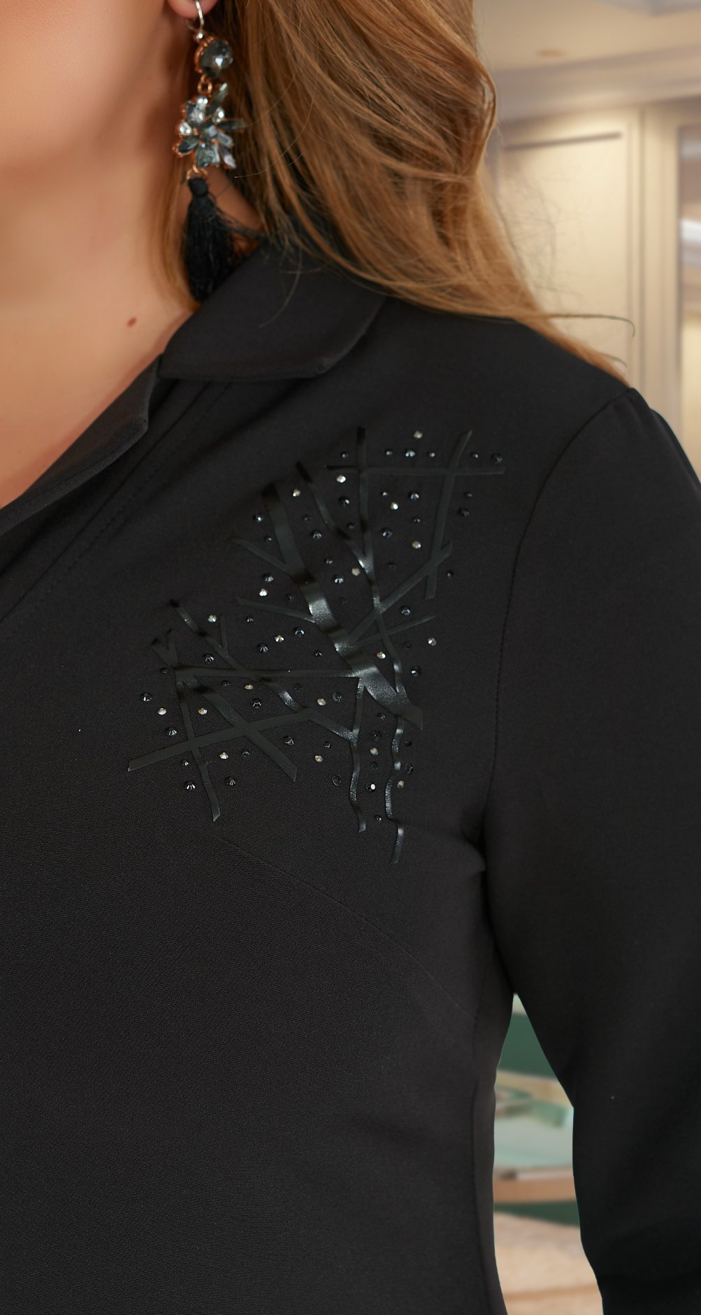 Стильное платье с воротничком и красивым декором из эко-кожи и кристаллов.