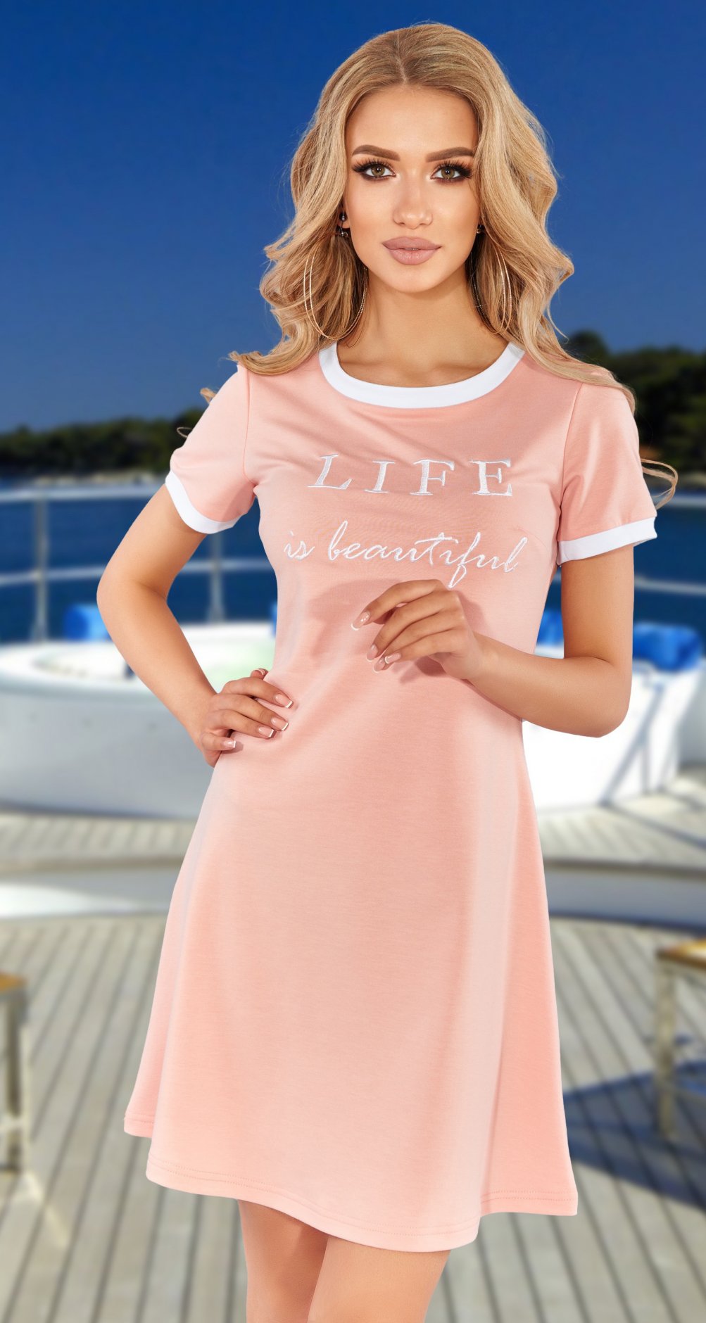 Но наша компания просит Вас учитывать, что трикотажное платье всегда будет на 10% меньше чем платье из текстиля, по своим обмерным данным! В этом случае оно выглядит более эстетично и женственно.