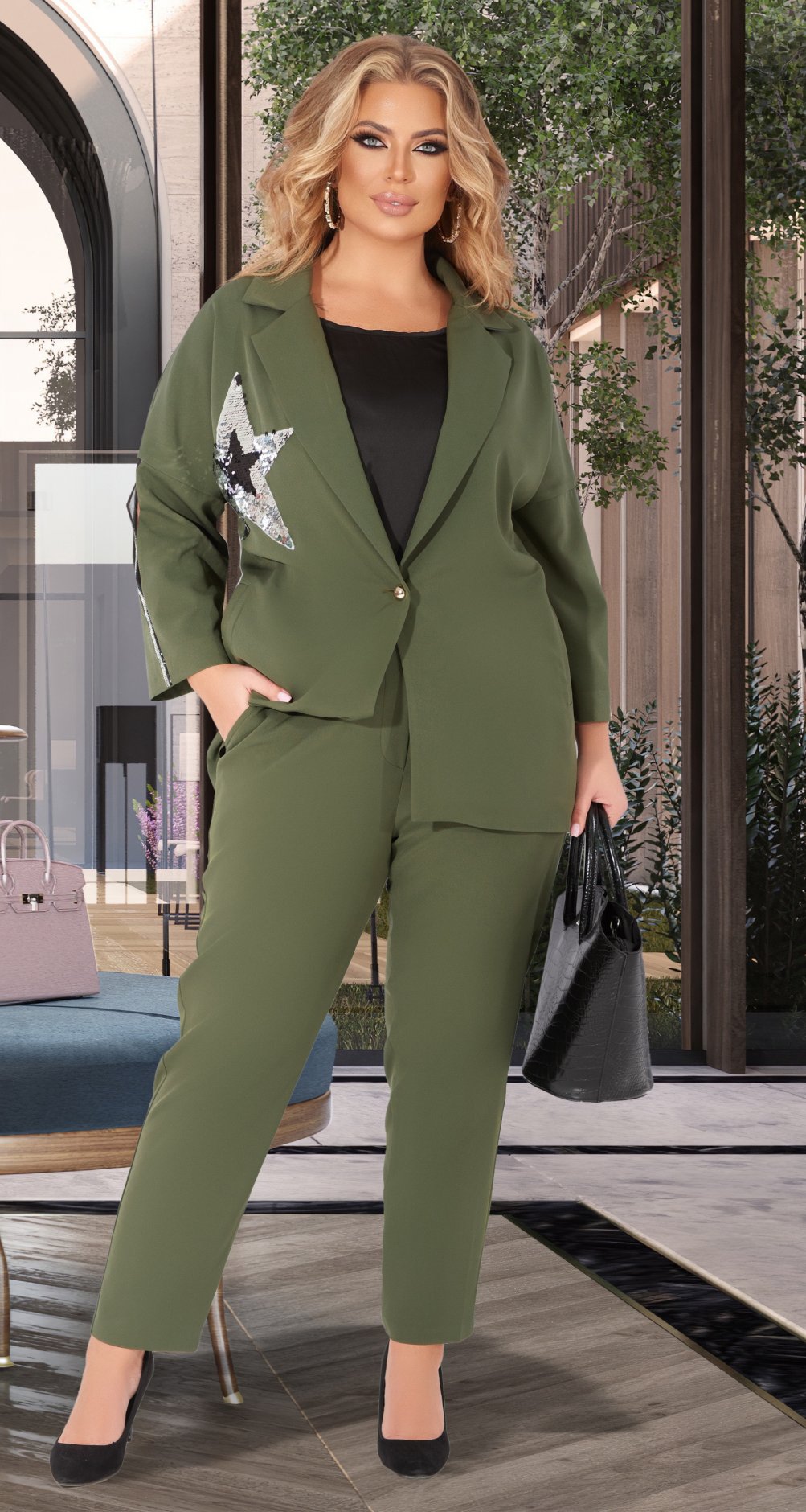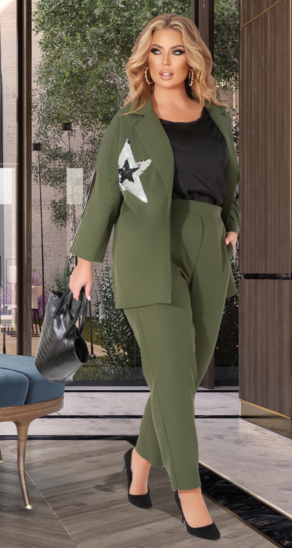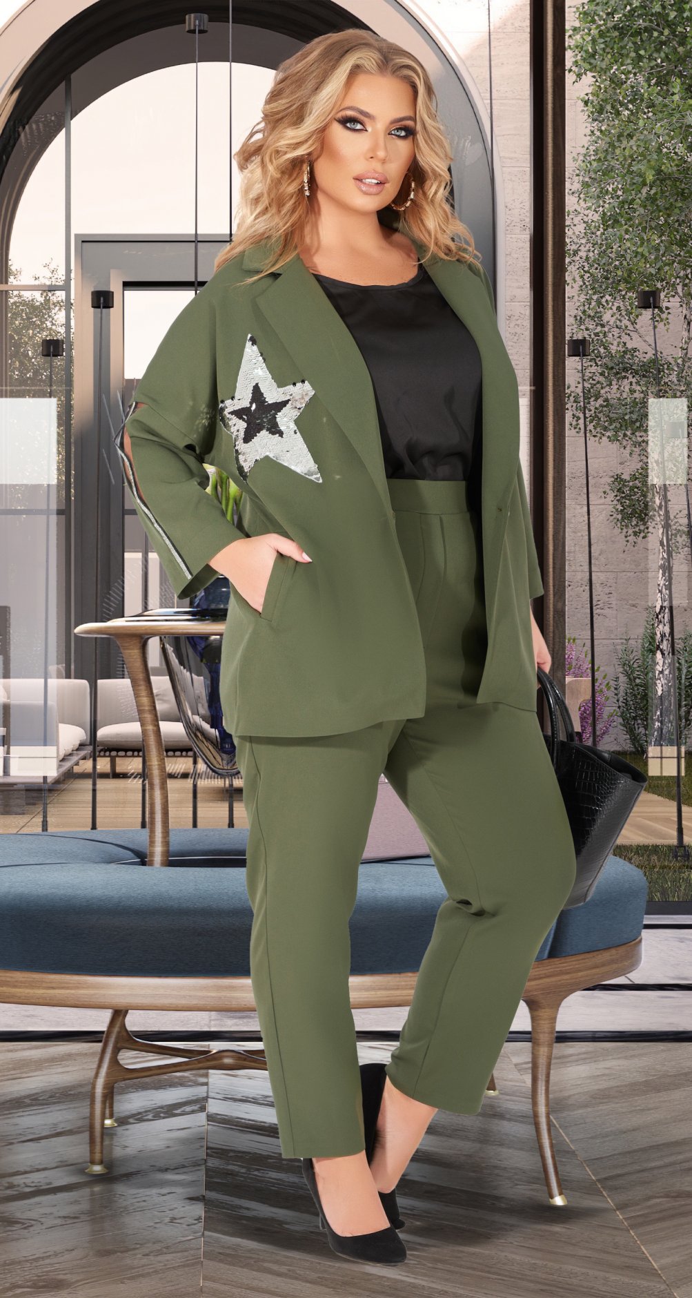 Это прекрасный костюм ,который подойдет для любого случая! Благодаря кристаллам , которыми отделаны рукава , и двустороннему украшению из пайетки ,комплект выглядит достойно и дорого!