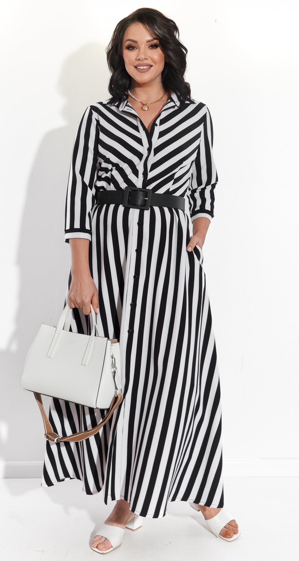 Платье-рубашка в чёрно-белую полоску из премиальной плательной ткани