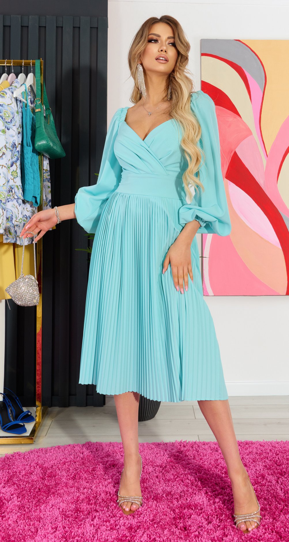 Платье плиссе с красивым декольте