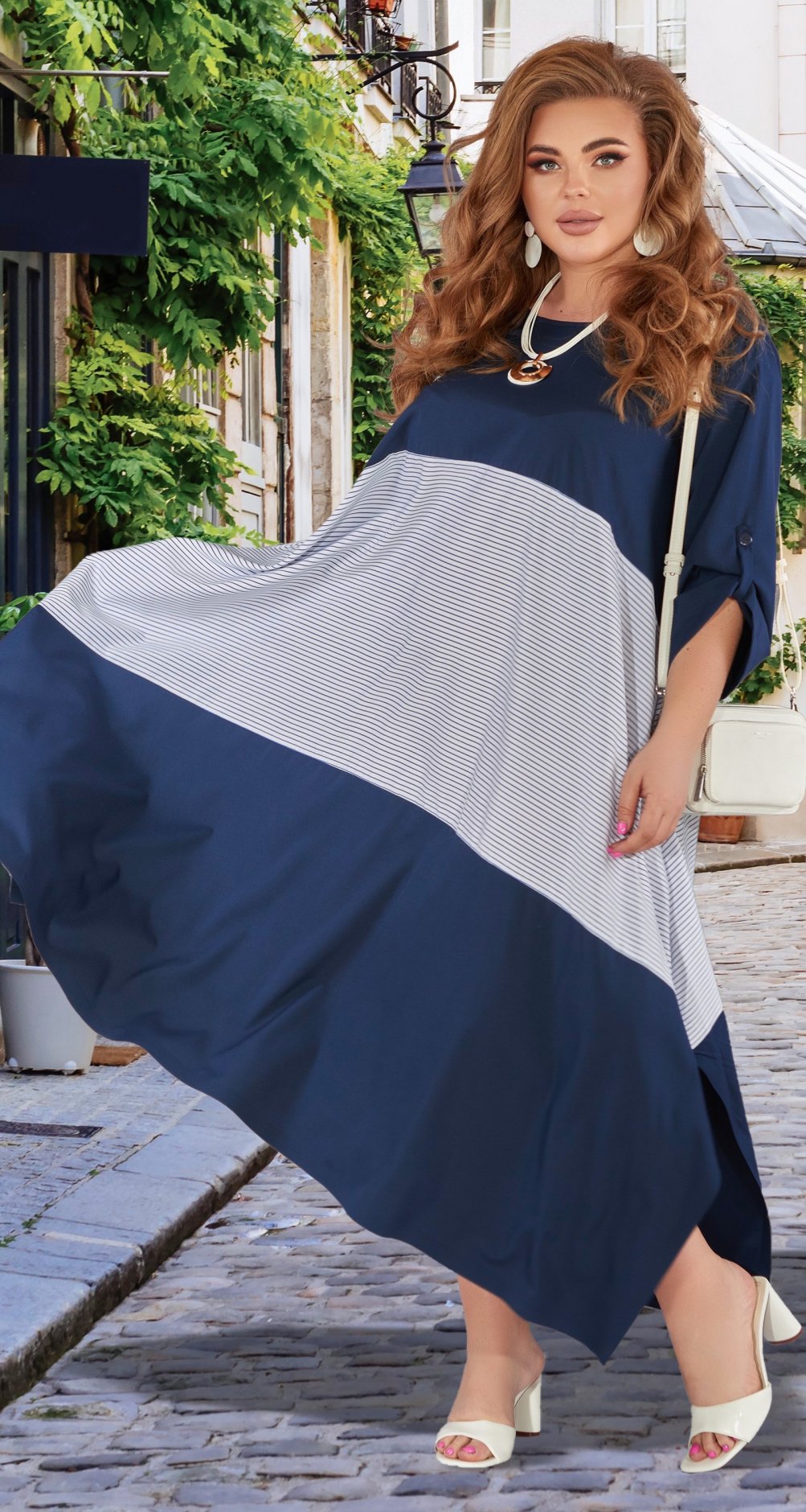 Каталог - Платья - Платья больших размеров - Свободное комбинированное платье большого размера