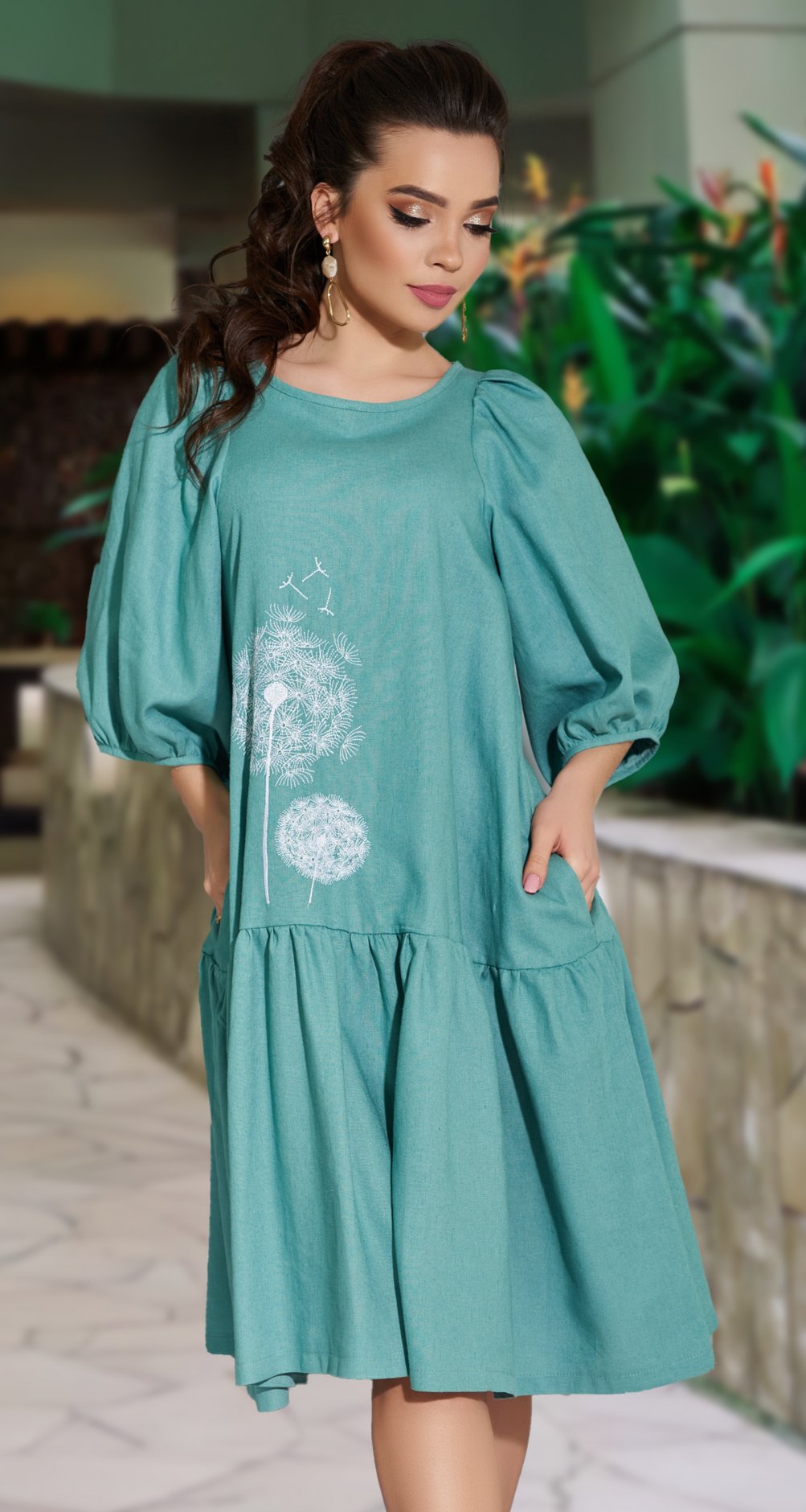 Красивое льняное платье со стильной лёгкой вышивкой!