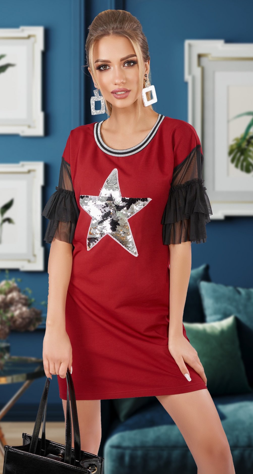 Каталог - Платья - Платье норма - Свободное платье с аппликацией из пайеток